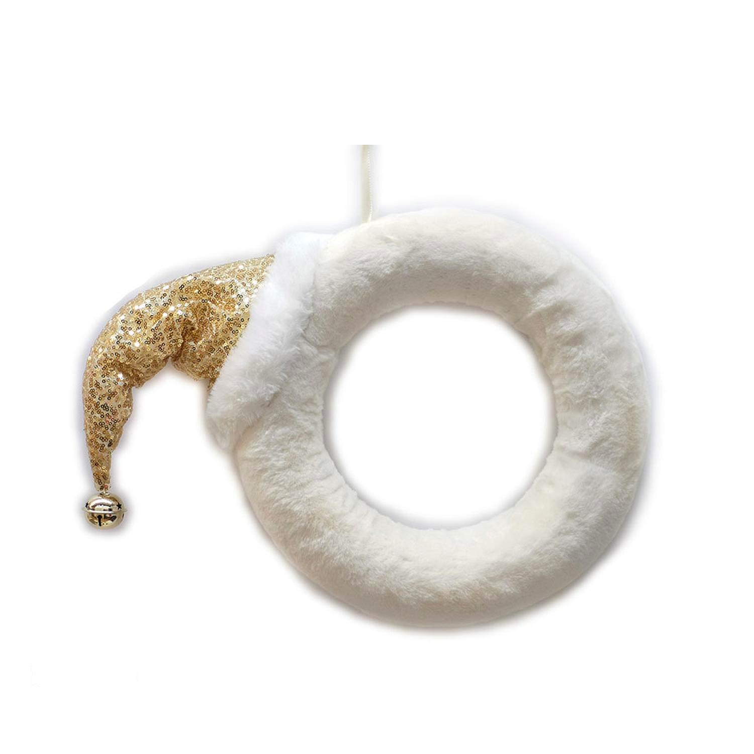 Στολίδι κρεμαστό στεφάνι λευκό με χρυσό καπέλο φ37cm