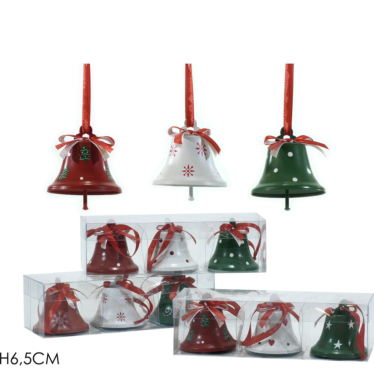 Προσθέστε μια κομψή και παραδοσιακή αίσθηση στη χριστουγεννιάτικη διακόσμησή σας με αυτές τις κρεμαστές καμπάνες. Με ύψος 6.5cm, είναι διαθέσιμο σε τρία διαφορετικά σχέδια σε κόκκινο, λευκό και πράσινο χρώμα, διακοσμημένα με εκλεπτυσμένα χριστουγεννιάτικα μοτίβα. Ιδανικές για να διακοσμήσουν το χριστουγεννιάτικο δέντρο ή οποιαδήποτε άλλη γιορτινή διακόσμηση.