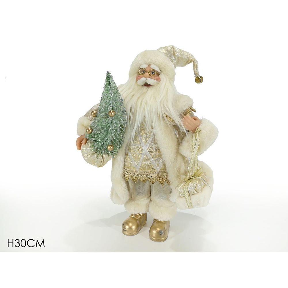 Άι Βασίλης κρατάει δεντράκι μπεζ/χρυσό λούτρινο 30cm.
