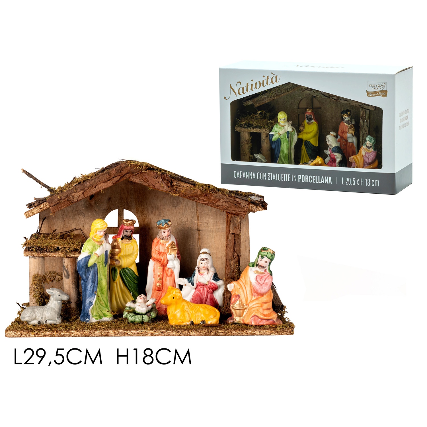 Φάτνη με πορσελάνινες φιγούρες πολύχρωμο ξύλο 29.5x18cm 8τμχ.