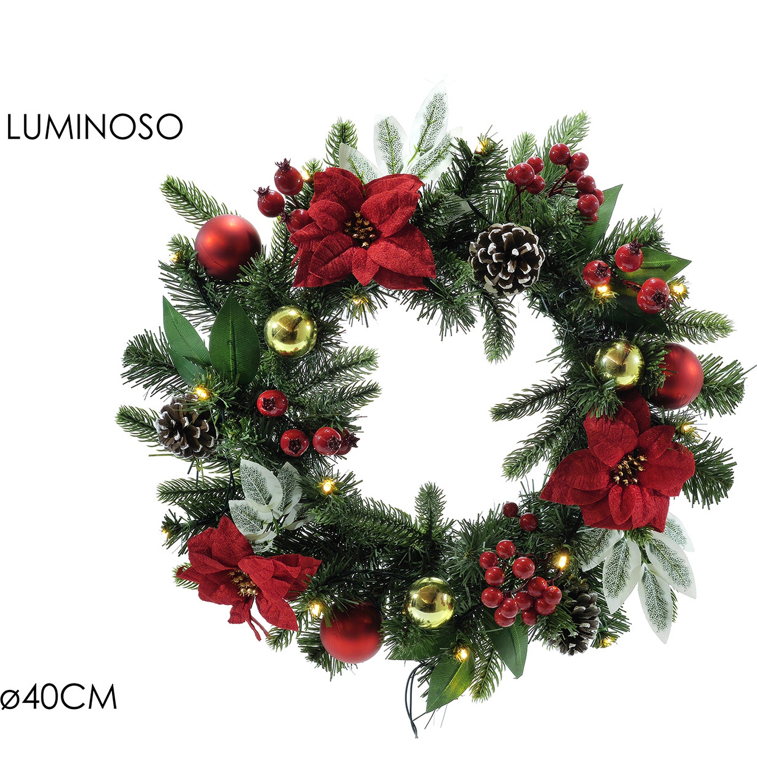 Φωτιζόμενο Χριστουγεννιάτικο Στεφάνι Με Κουκουνάρια Και Berries Φ40cm