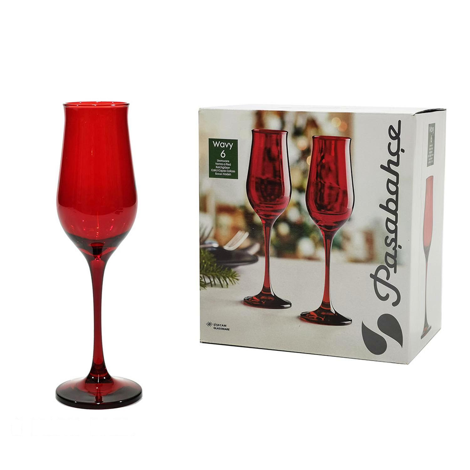 Ποτήρι σαμπάνιας 19cl κολωνάτο κόκκινο γυαλί σετ 6τμχ