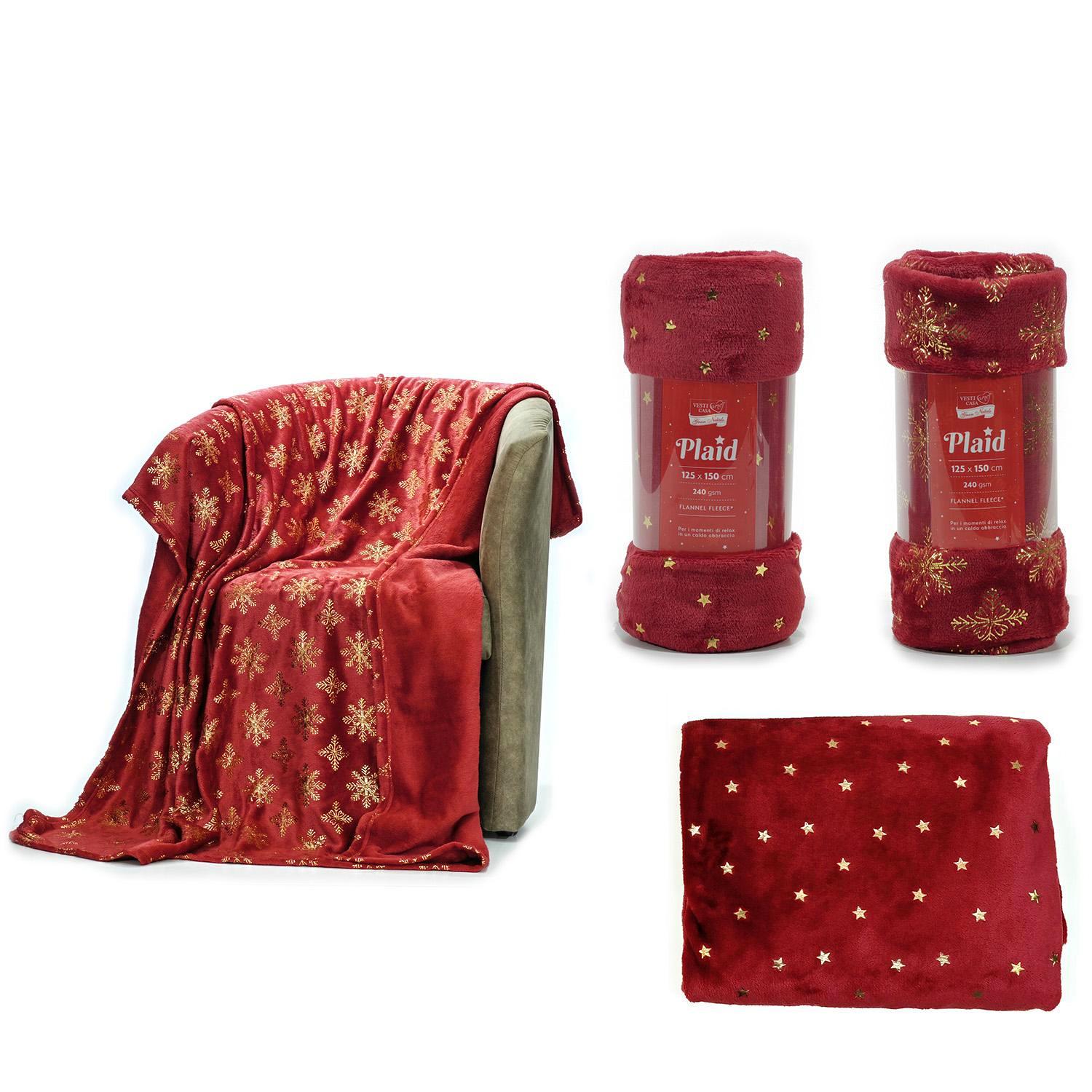 Ριχτάρι με χριστουγεννιάτικη διακόσμηση κόκκινο/χρυσό φλάνελ 125x150cm σε 2 σχέδια.