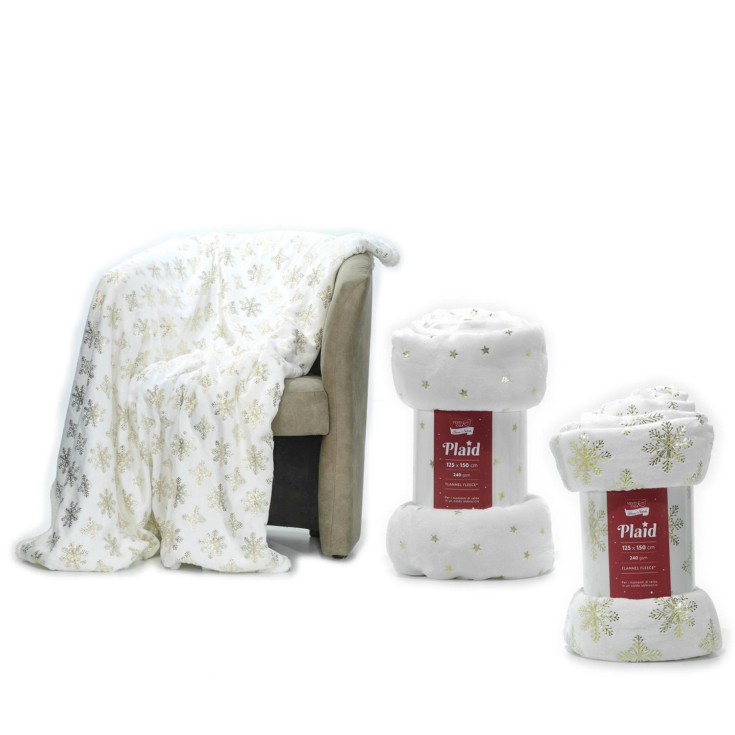Ριχτάρι με χριστουγεννιάτικη διακόσμηση λευκό/χρυσό φλάνελ 125x150cm σε 2 σχέδια.