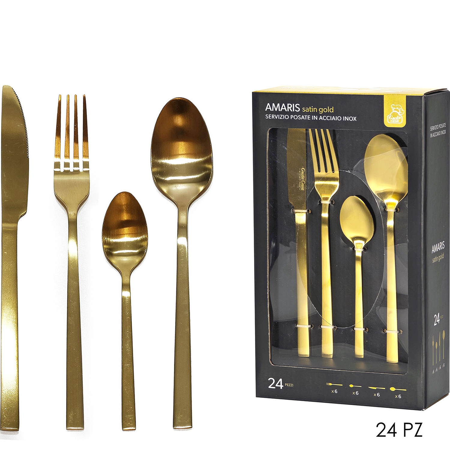 Σετ 24Τμχ Μαχαιροπήρουνα Amaris Χρυσό Σατινέ