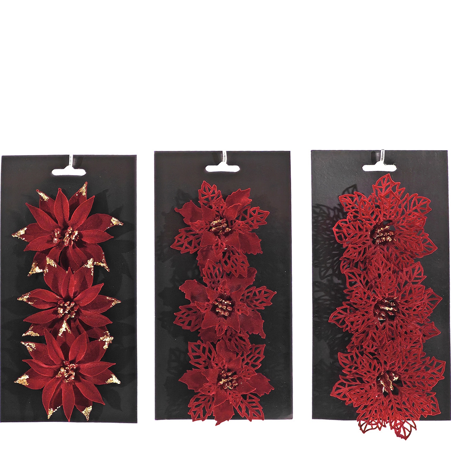 Χριστουγεννιάτικα Διακοσμητικά Λουλούδια Κόκκινο Σε 3 Σχέδια