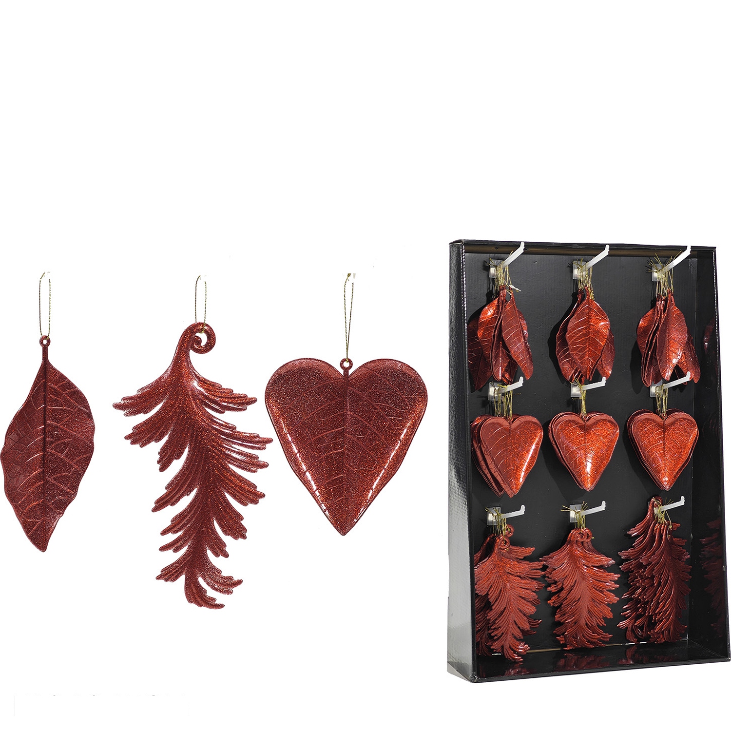 Προσθέστε μια φανταστική εορταστική αίσθηση στο χώρο σας με αυτά τα χριστουγεννιάτικα κρεμαστά διακοσμητικά σε κόκκινο χρώμα. είναι διαθέσιμο σε τρία διαφορετικά σχέδια: φύλλο, καρδιά και κλαδί, καθένα με μοναδική υφή και λάμψη. Ιδανικά για το δέντρο ή οποιαδήποτε άλλη χριστουγεννιάτικη διακόσμηση, αυτά τα διακοσμητικά θα προσφέρουν μια ζεστή και γιορτινή ατμόσφαιρα.