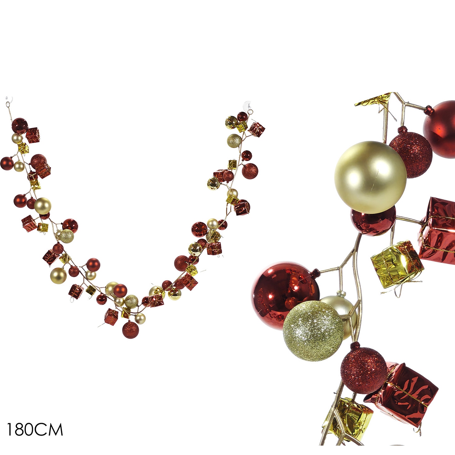 Χριστουγεννιάτικη Γιρλάντα Με Μπάλες Και Δώρα Κόκκινο/Χρυσό 180cm