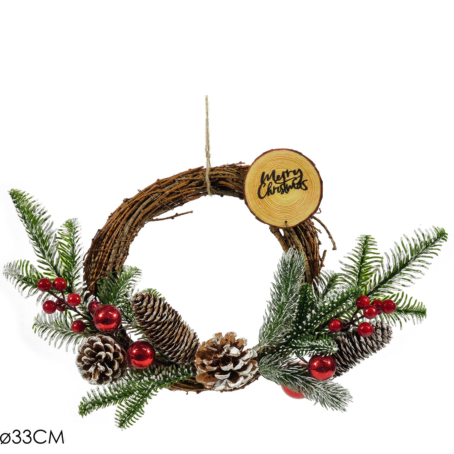 Χριστουγεννιάτικη Πόρτα Στεφάνι Με Φιόγκο Και Κόκκινα Στολίδια Φ33cm