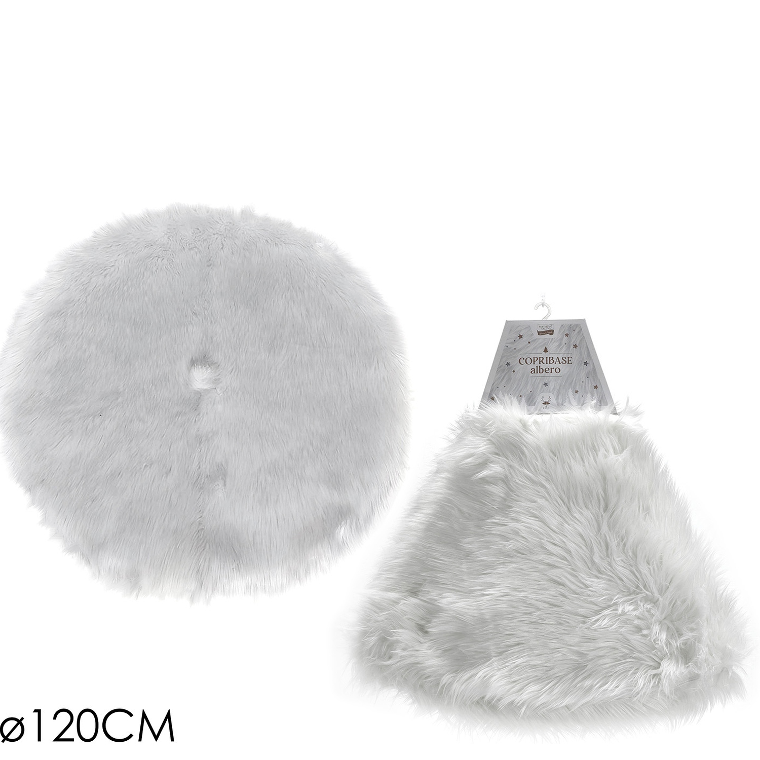Χριστουγεννιάτικη Βάση Δέντρου Συνθετική Γούνα Λευκό Φ120cm
