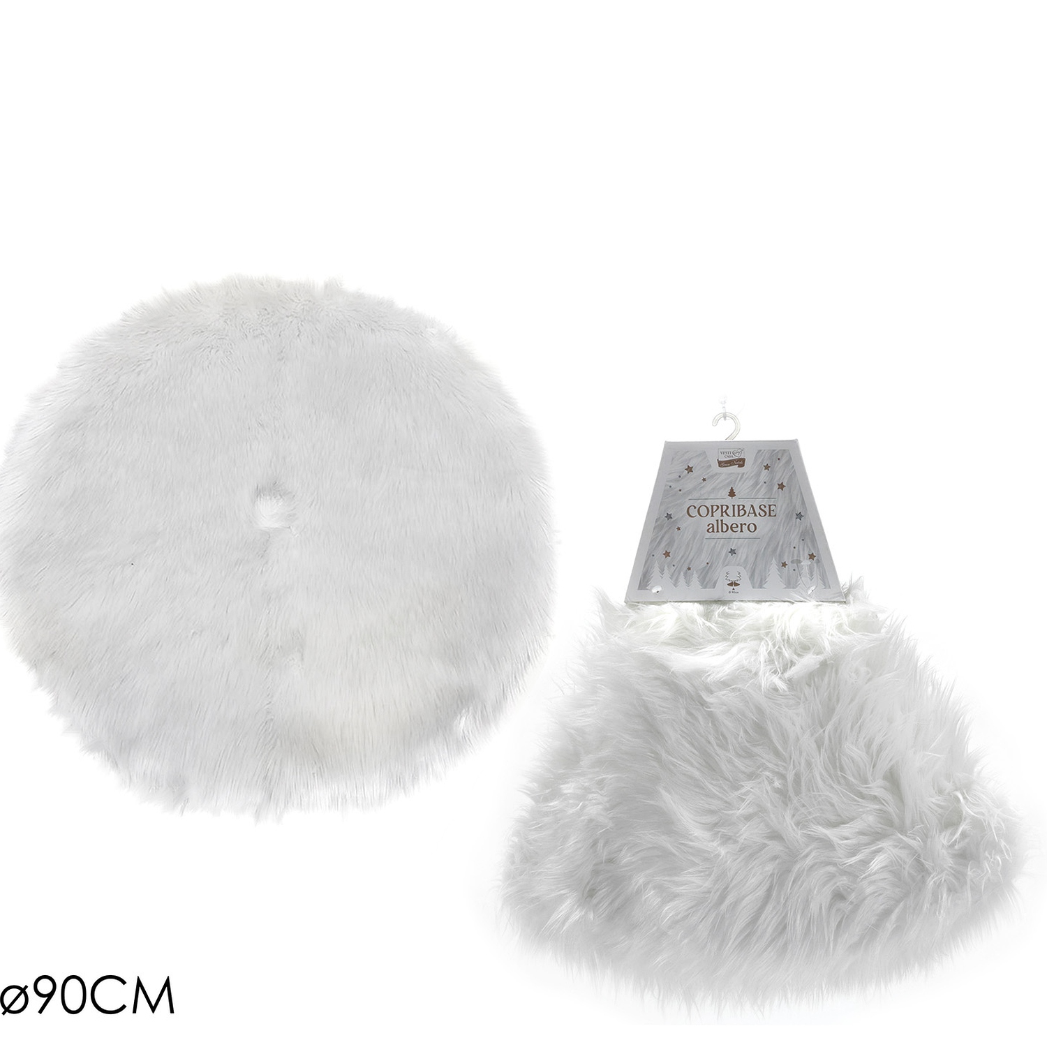 Χριστουγεννιάτικη Βάση Δέντρου Συνθετική Γούνα Λευκό Φ90cm