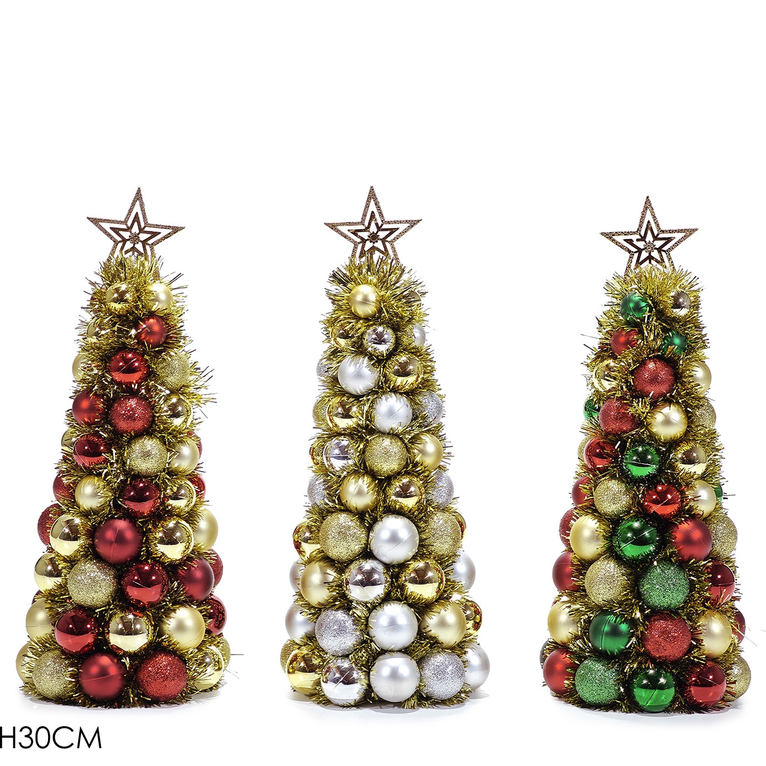 Χριστουγεννιάτικο Δεντράκι Με Μπάλες Και Αστέρι 30cm Σε 3 Σχέδια