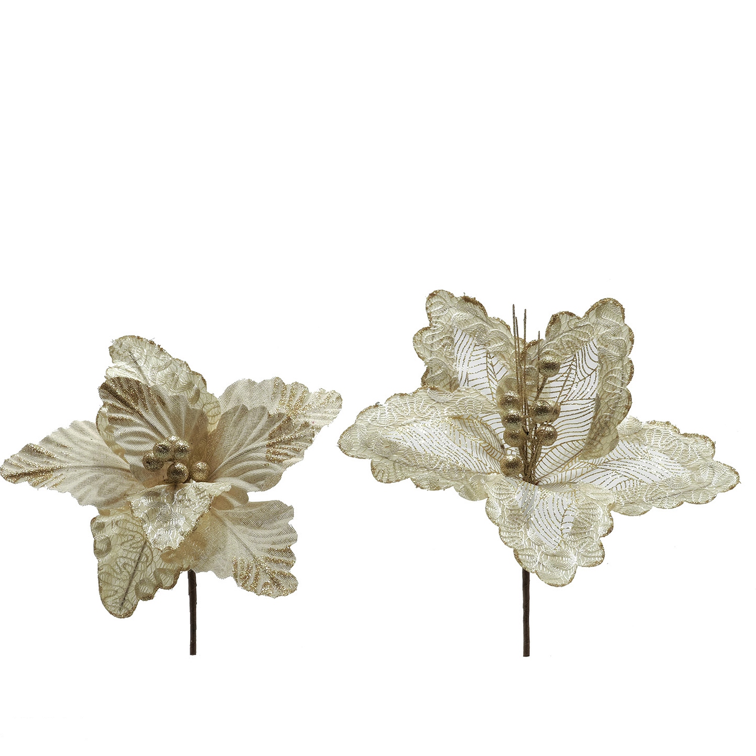 Χριστουγεννιάτικο Λουλούδι Σαμπανιζέ Με Χρυσό Γκλίτερ 40cm Σε 2 Σχέδια
