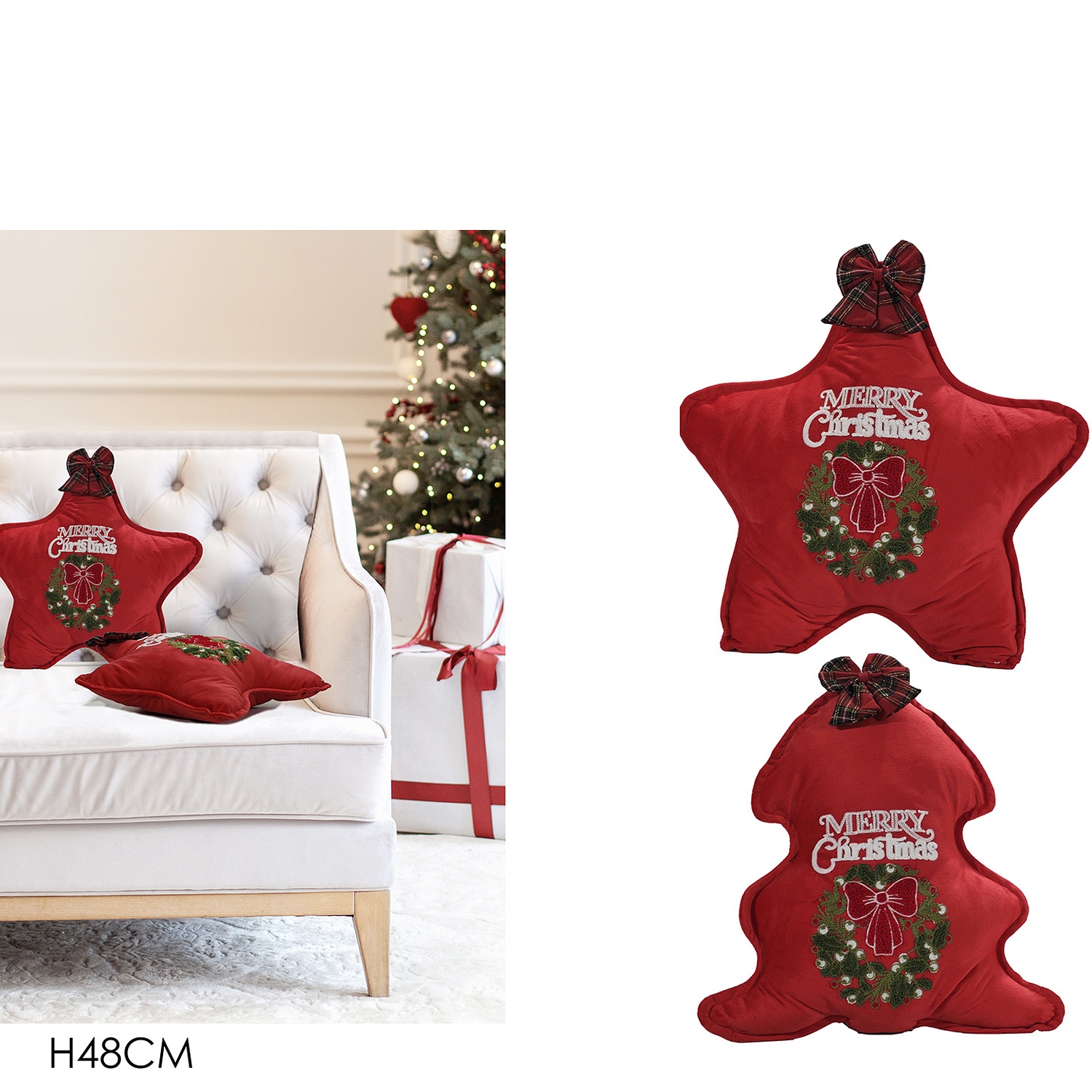 Προσθέστε μια γιορτινή και ζεστή αίσθηση στο σπίτι σας με αυτά τα χριστουγεννιάτικα μαξιλάρια. Με ύψος 48cm, αυτά τα μαξιλάρια προσφέρουν άνεση και στυλ στη διακόσμησή σας. είναι διαθέσιμο σε δύο διαφορετικά σχέδια, ιδανικό για να τοποθετηθεί σε καναπέδες, πολυθρόνες ή οποιοδήποτε σημείο του σπιτιού σας που χρειάζεται μια γιορτινή πινελιά.