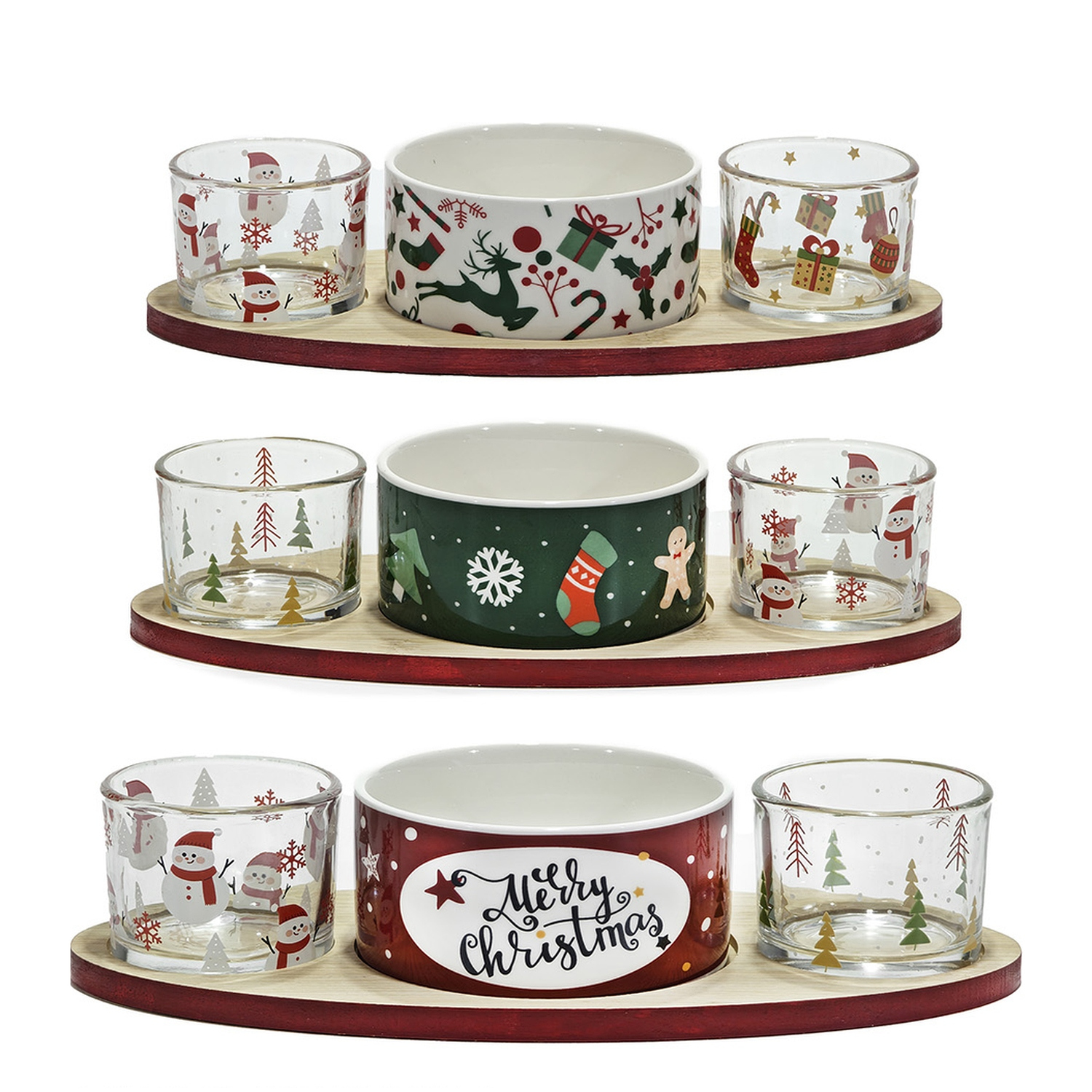 Προσθέστε στυλ και λειτουργικότητα στο χριστουγεννιάτικο τραπέζι σας με αυτό το σετ από 3 μπολ με βάση μπαμπού. Με διαστάσεις 28x13cm και διαθέσιμα σε 3 διαφορετικά σχέδια είναι ιδανικά για να σερβίρετε τα αγαπημένα σας ορεκτικά με στυλ και κομψότητα.