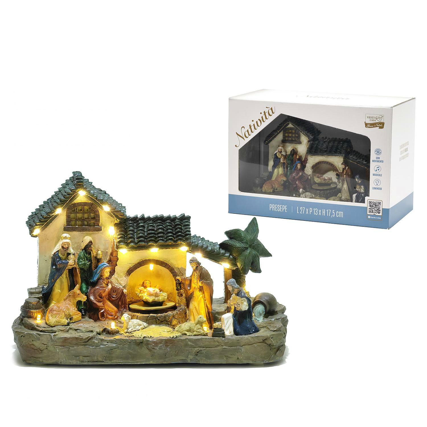 Χριστουγεννιάτικο σκηνικό φάτνη με φως κίνηση και μουσική 27x17.5cm.