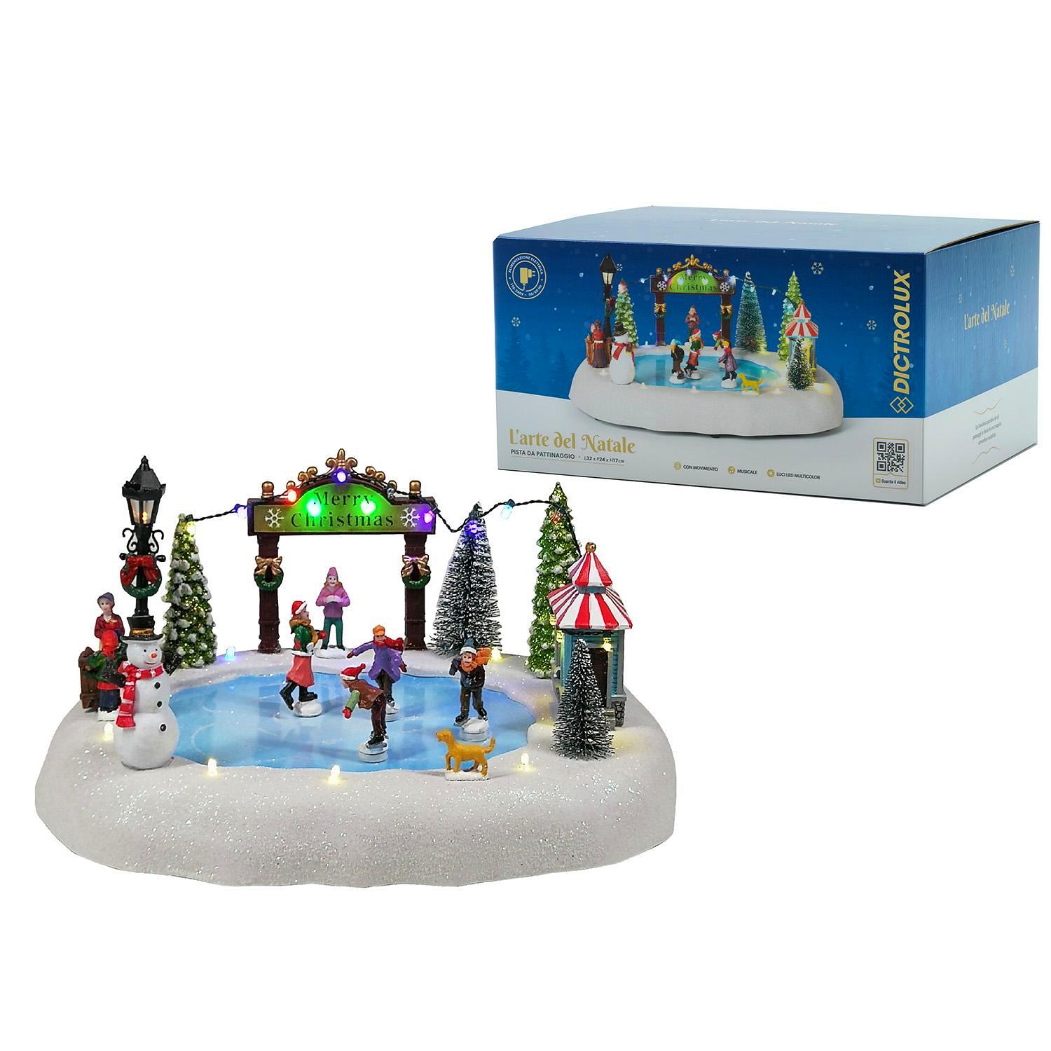Χριστουγεννιάτικο σκηνικό παγοδρόμιο με κίνηση και φως 17x32x24cm
