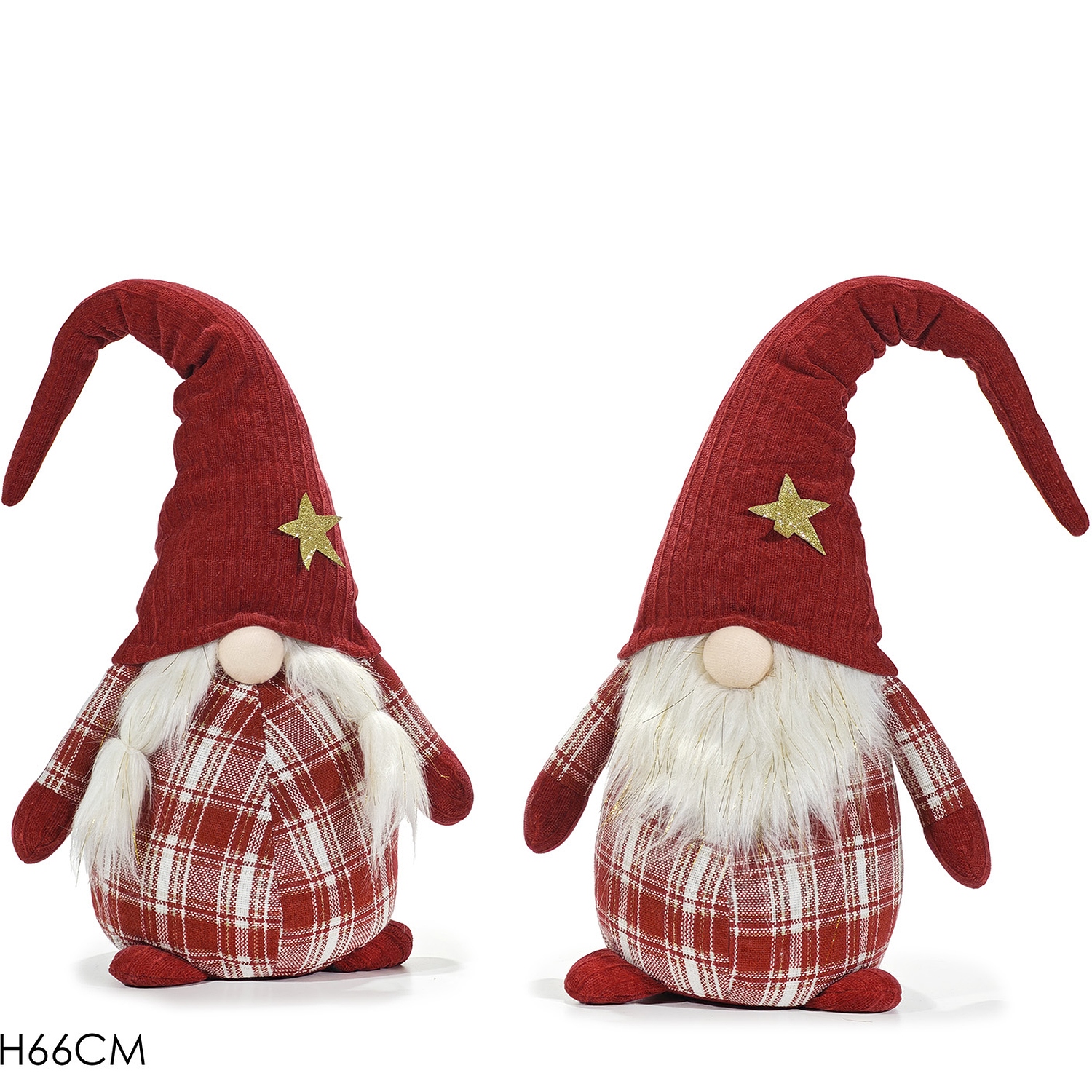 Χριστουγεννιάτικος Νάνος Ταρτάν Κόκκινο 66cm Σε 2 Σχέδια