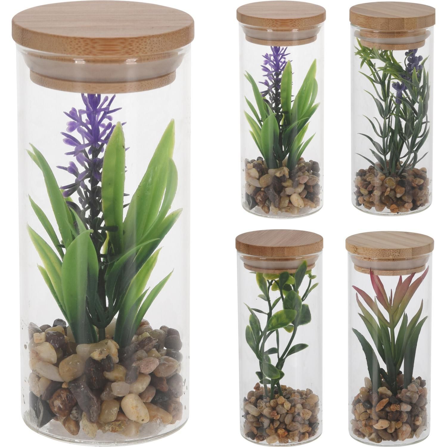 Φυτό τεχνητό σε γυάλινο δοχείο με μπαμπού καπάκι σε 4 συνδυασμούς