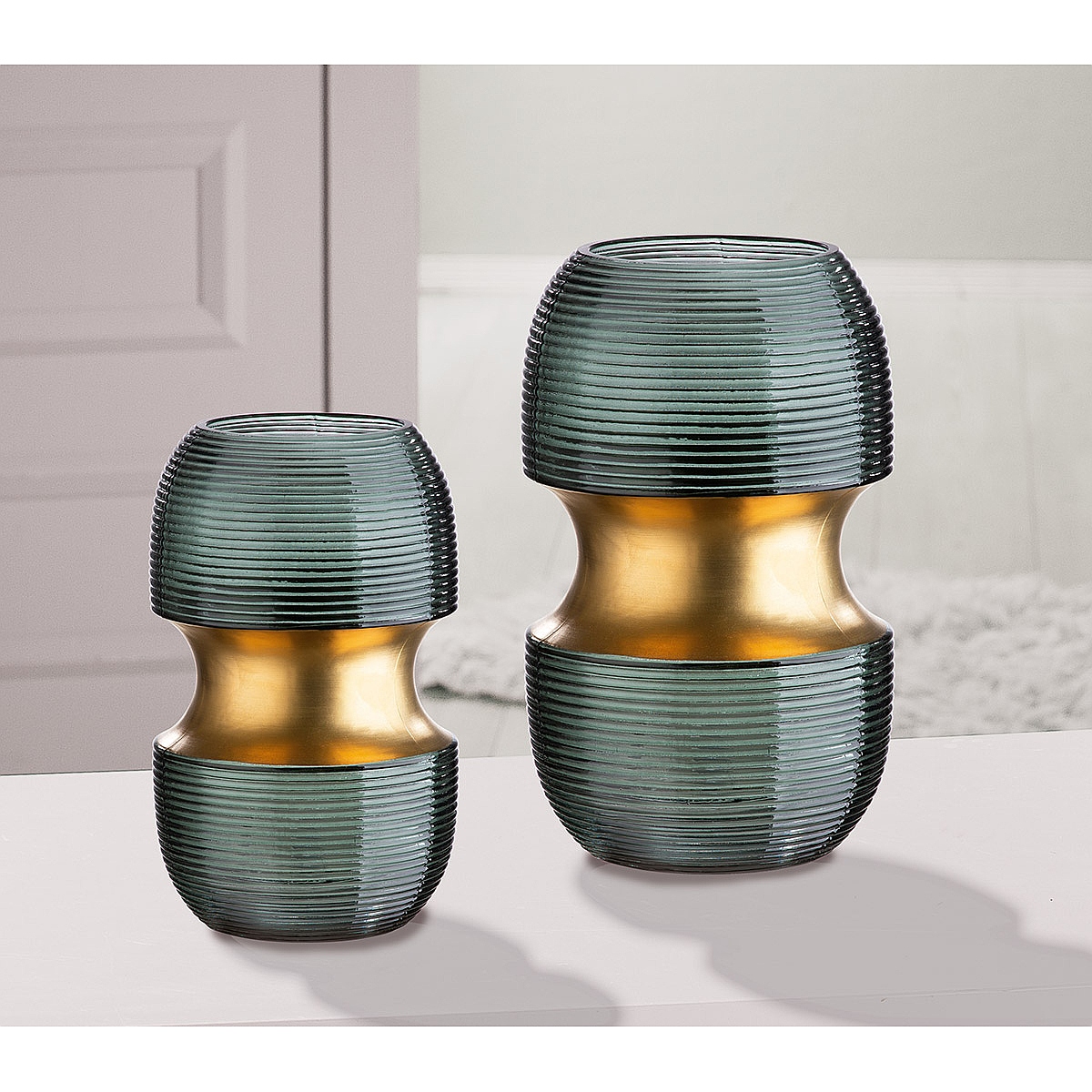 Βάζο τιρκουάζ/χρυσό γυαλί 11x11x18cm.