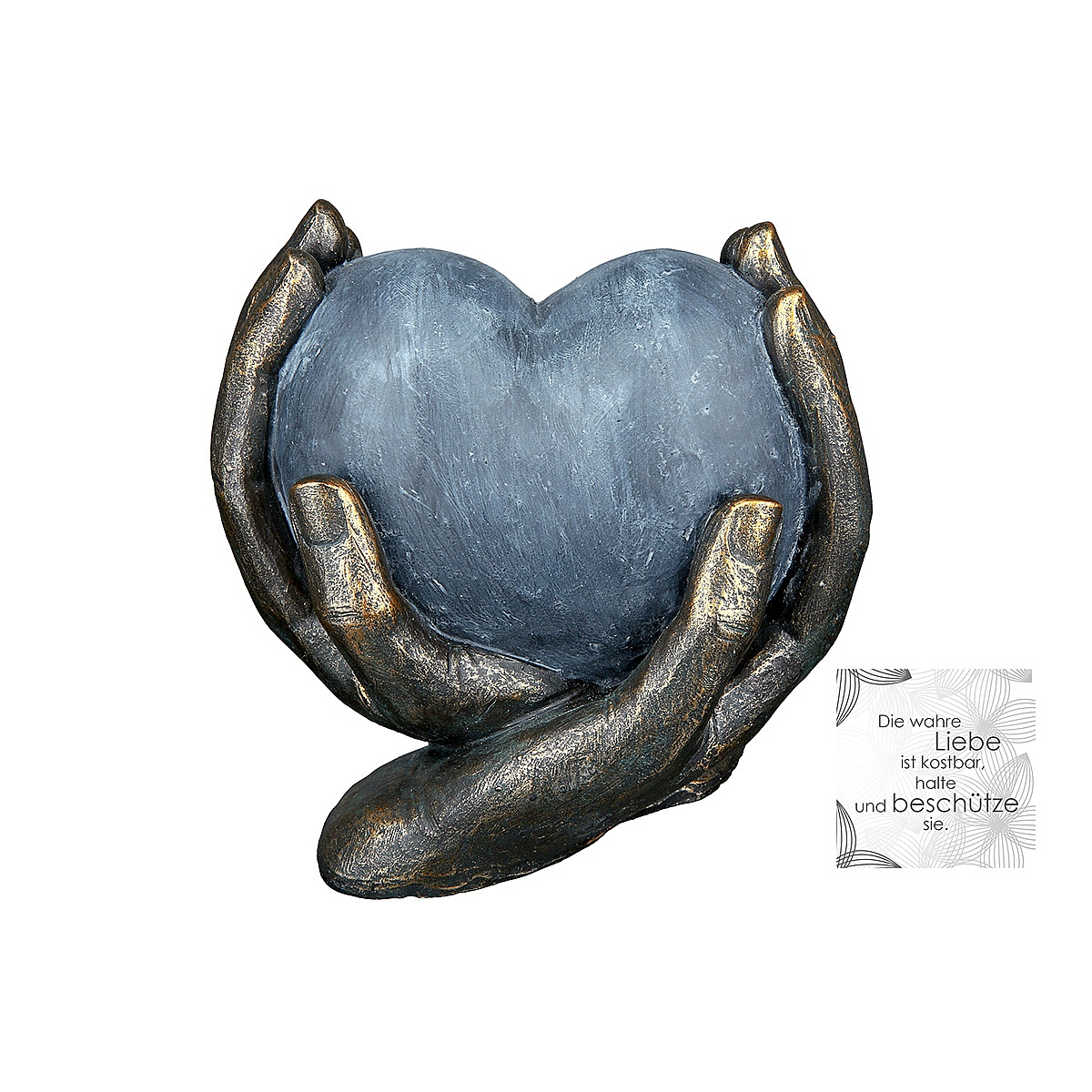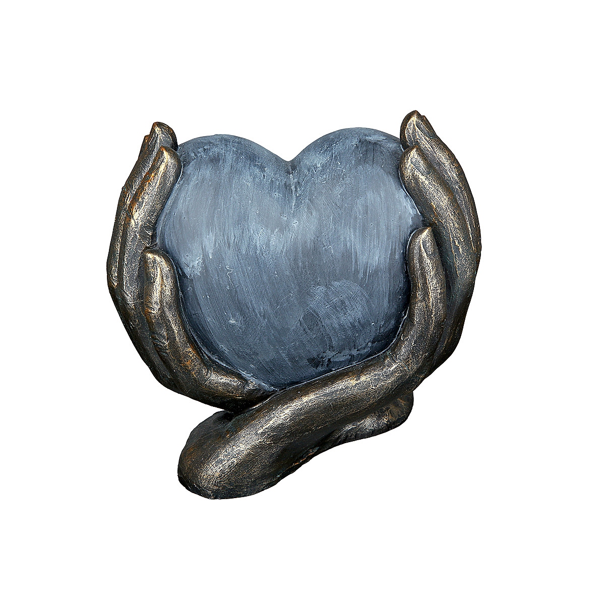 Διακοσμητικό χέρια κρατούν καρδιά μπρονζέ/γκρι polyresin 10x15x15cm.