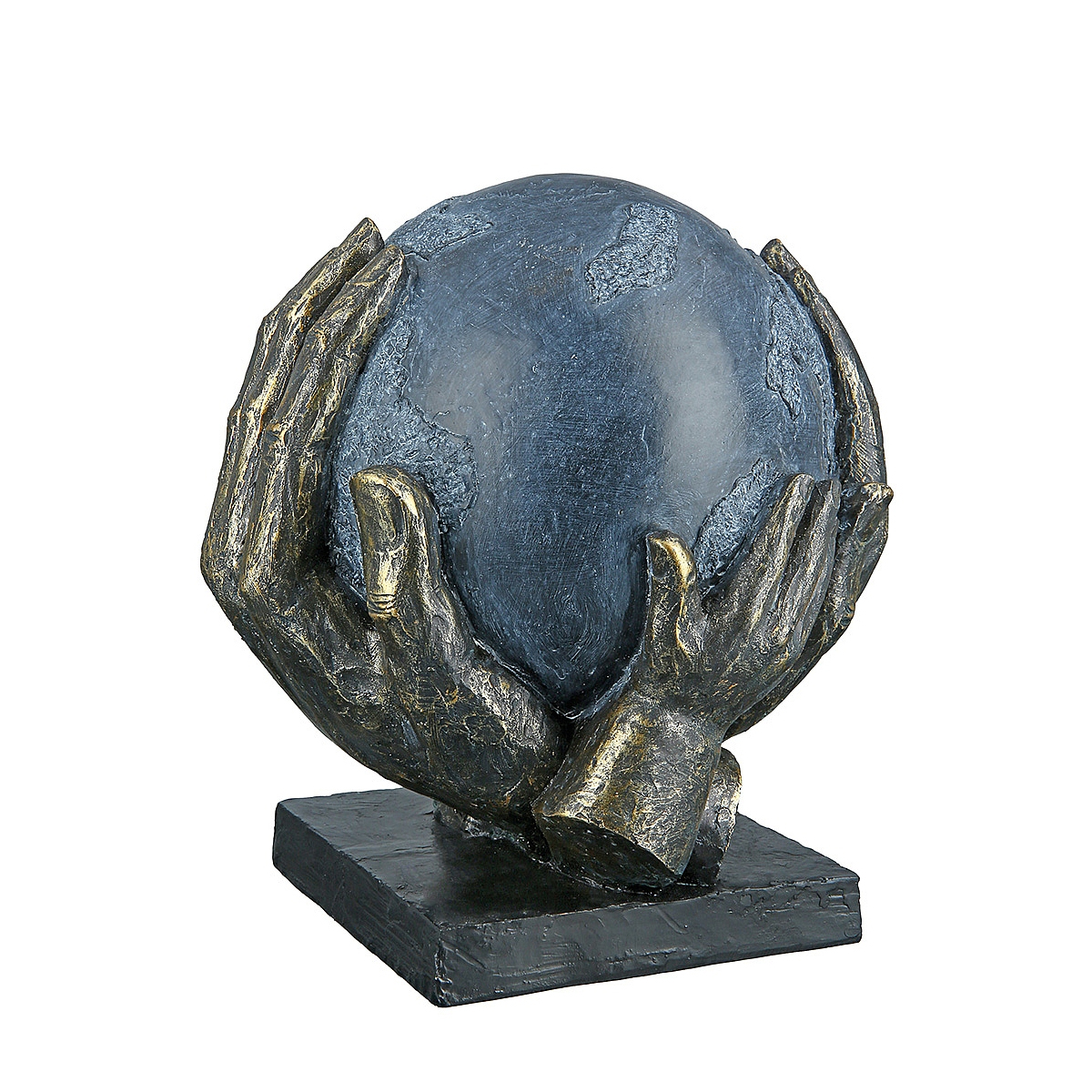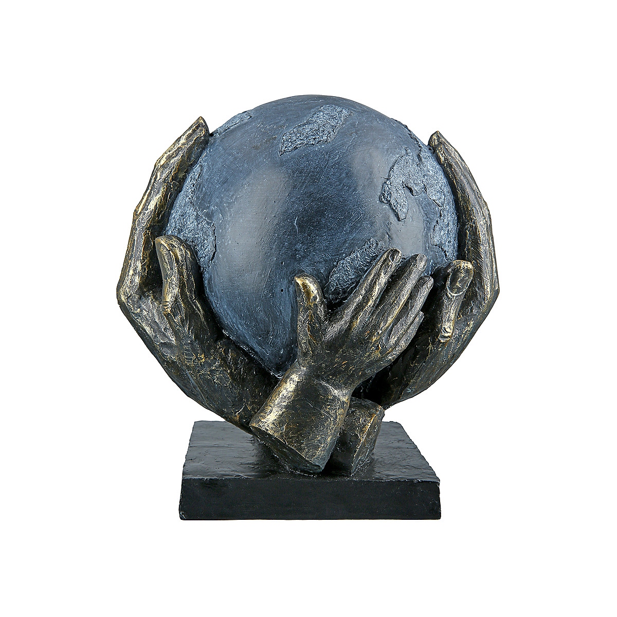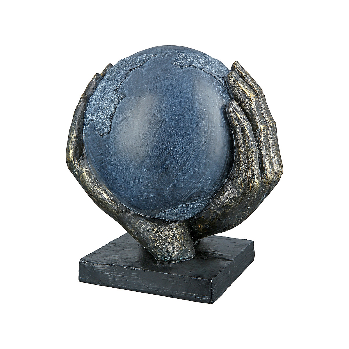 Διακοσμητικό χέρια κρατούν υδρόγειο μπρονζέ/γκρι polyresin 15x18x19cm.