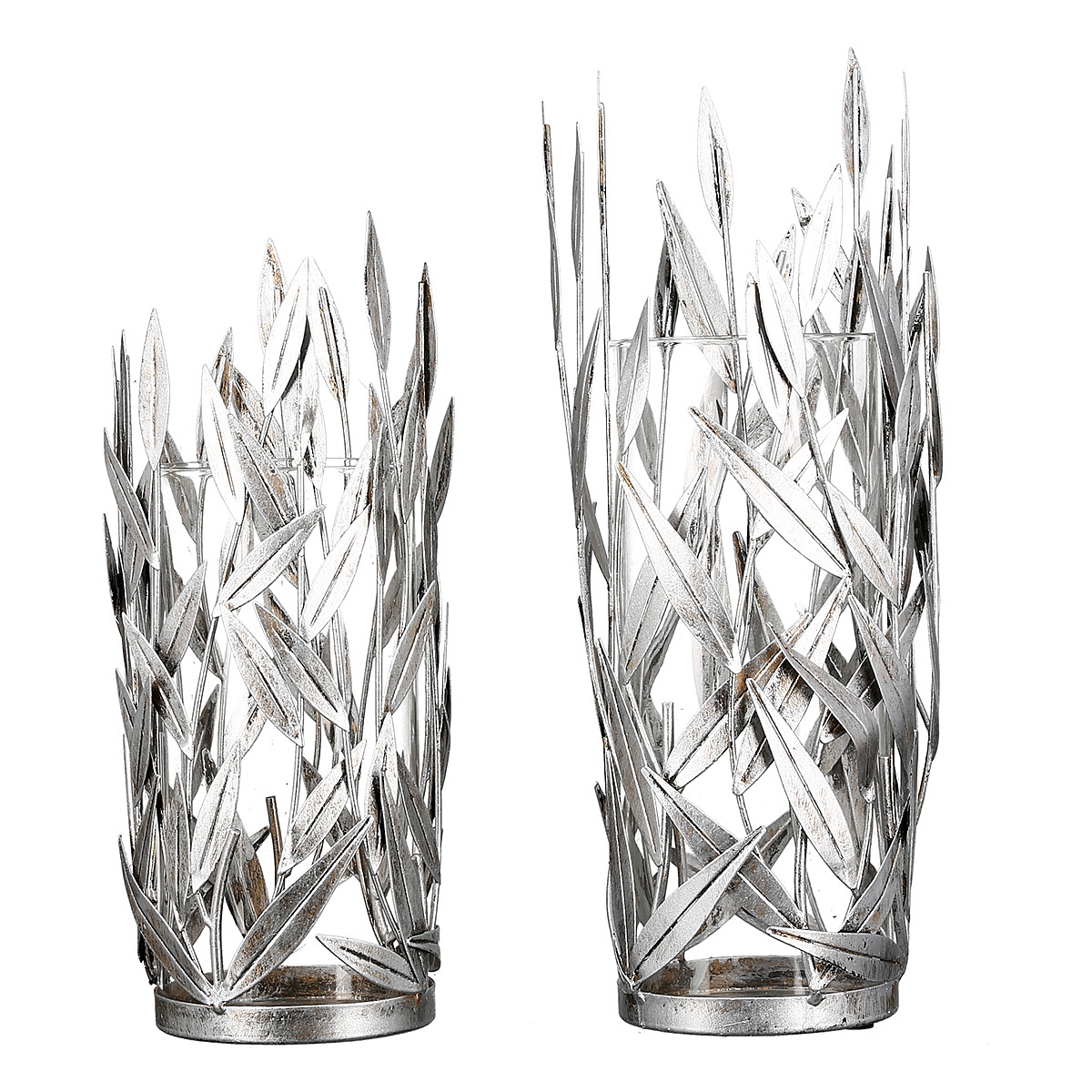 Κηροπήγιο φυλλωσιά αντικέ ασημί μέταλλο 43cm.