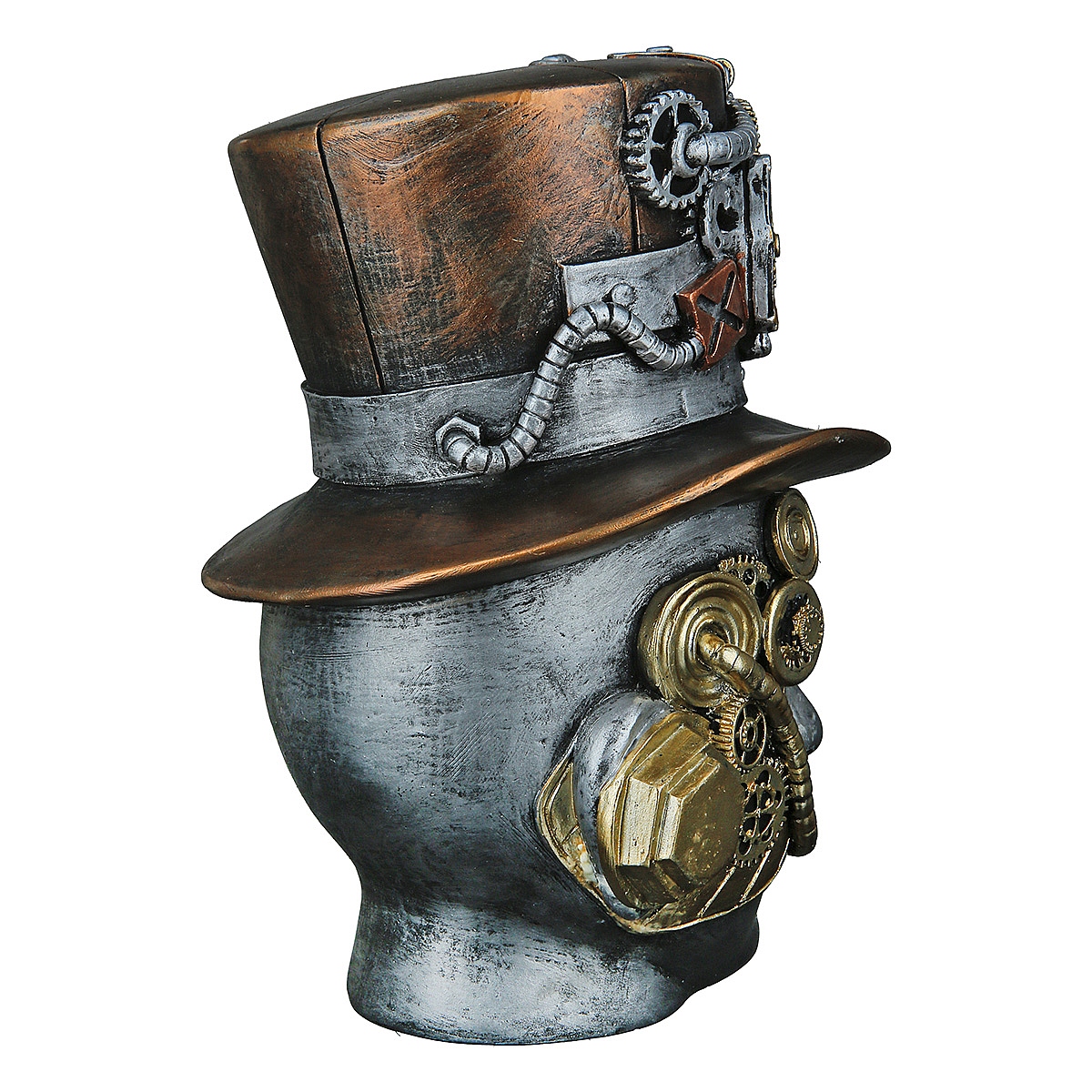 Διακοσμητικό steampunk γυναικείο πρόσωπο ασημί polyresin 18x16x20cm.
