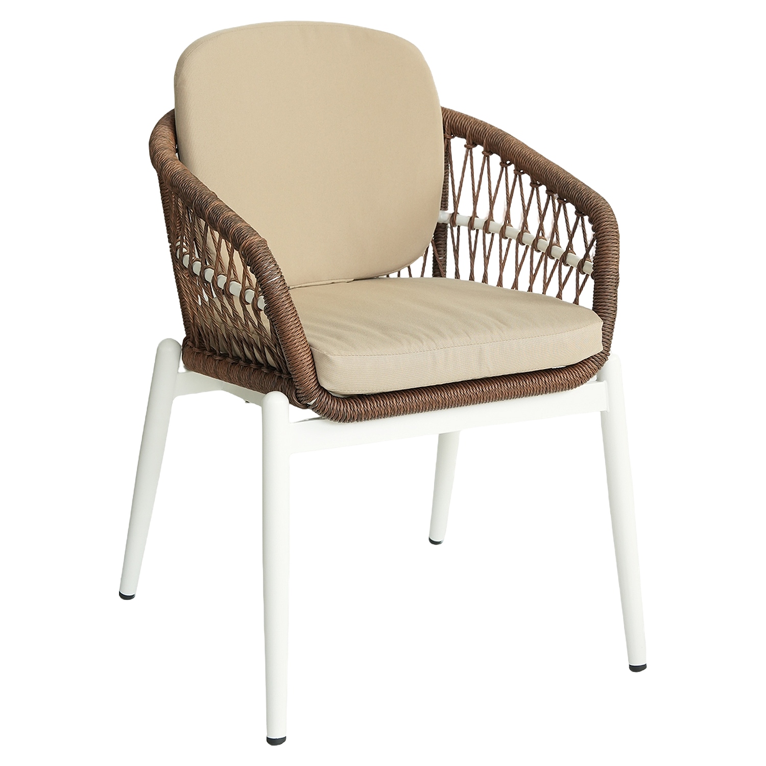 Η πολυθρόνα κήπου ArteLibre ZANZIBAR σε λευκό και φυσικό συνδυασμό είναι η ιδανική επιλογή για κομψούς εξωτερικούς χώρους. Ο σκελετός της είναι κατασκευασμένος από αλουμίνιο με διαστάσεις Φ28xT1.5mm και Φ22xT1.2mm, προσφέροντας μια ισχυρή και ανθεκτική κατασκευή. Η πλάτη διαθέτει στριφτό rattan PE διαμέτρου Φ4.5mm που προσφέρει άνεση και στυλ, ενώ το μαξιλάρι πάχους 5cm προσθέτει επιπλέον άνεση. Το φινίρισμα επιφάνειας με χρωματισμένη επικάλυψη εξασφαλίζει αντοχή σε διάφορες καιρικές συνθήκες και ευκολία στη συντήρηση. Το μοναδικό της σχέδιο είναι ιδανικό για ιδιωτικούς και επαγγελματικούς χώρους, όπως καφετέριες και εστιατόρια, προσφέροντας μια πολυτελή αλλά ταυτόχρονα πρακτική λύση για κάθε εξωτερικό περιβάλλον.