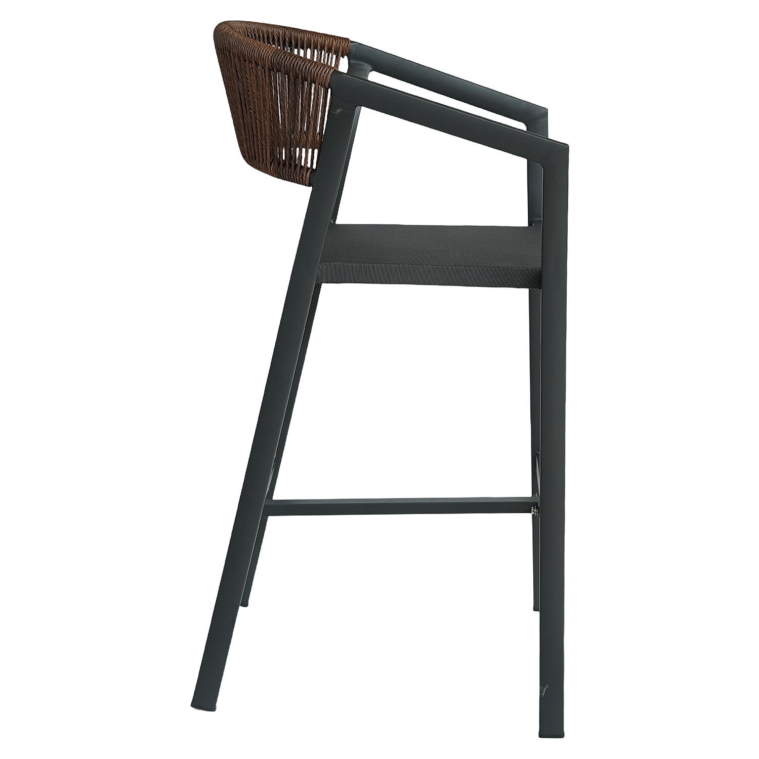 Το σκαμπό bar ArteLibre SANTORINI σε μαύρο και φυσικό συνδυασμό είναι η ιδανική λύση για μοντέρνους εξωτερικούς χώρους. Ο σκελετός είναι κατασκευασμένος από ανθεκτικό αλουμίνιο με διαστάσεις 38x17x1.2mm, προσφέροντας σταθερότητα και ελαφρότητα. Η πλάτη διαθέτει στριφτό rattan PE διαμέτρου Φ4.5mm που προσφέρει άνεση και στυλ, ενώ το κάθισμα από πλέγμα textilene εξασφαλίζει άριστη διαπνοή και άνεση ακόμα και σε ζεστές ημέρες. Το φινίρισμα της επιφάνειας που είναι κατάλληλο για εξωτερικούς χώρους εξασφαλίζει αντοχή σε διάφορες καιρικές συνθήκες και ευκολία στη συντήρηση. Ιδανικό για χρήση σε μπαρ, καφετέριες ή οποιοδήποτε επαγγελματικό χώρο, το σκαμπό προσφέρει μια κομψή και πρακτική λύση για κάθε εξωτερικό περιβάλλον.