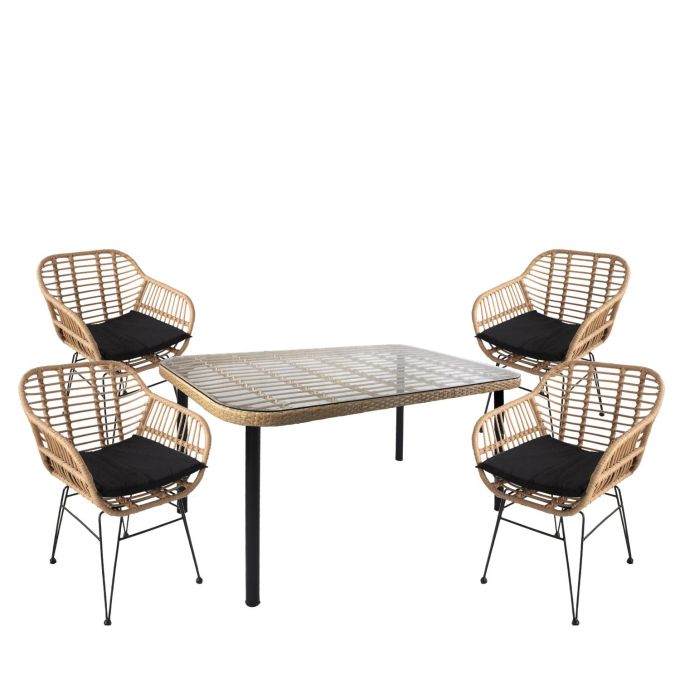 Σετ τραπεζαρία κήπου AMPLAS φυσικό/μαύρο μέταλλο/rattan/γυαλί με 4 καρέκλες.