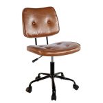 Καρέκλα γραφείου Avia σε καφέ χρώμα, με επενδυμένο κάθισμα και πλάτη από δερματίνη για κομψή εμφάνιση και άνεση. Διαθέτει ρυθμιζόμενο ύψος, μαύρη μεταλλική βάση με τροχούς για ευκολία στη μετακίνηση και vintage σχεδιασμό που ταιριάζει σε κάθε χώρο.