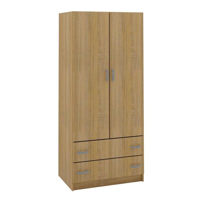 Ντουλάπα ρούχων δίφυλλη κατασκευασμένη από οικολογική μοριοσανίδα, επενδεδυμένη με μελαμίνη. Minimal σχεδιασμός σε χρώμα sonoma που θα δέσει αρμονικά με το χώρο σας.