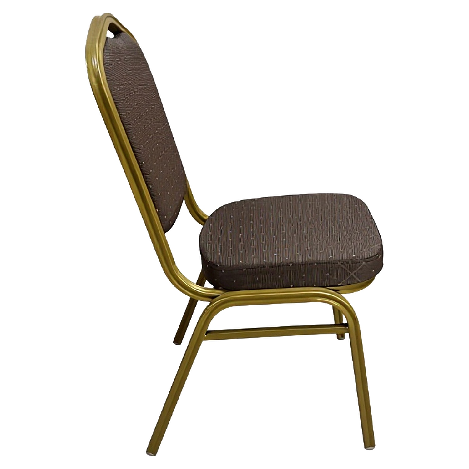 Η καρέκλα διαθέτει έναν ανθεκτικό μεταλλικό σκελετό και υφασμάτινη επένδυση, συνδυάζοντας την αντοχή με την αισθητική. Το μπορντό ύφασμα με το χρυσό πλαίσιο δημιουργούν έναν εντυπωσιακό συνδυασμό.