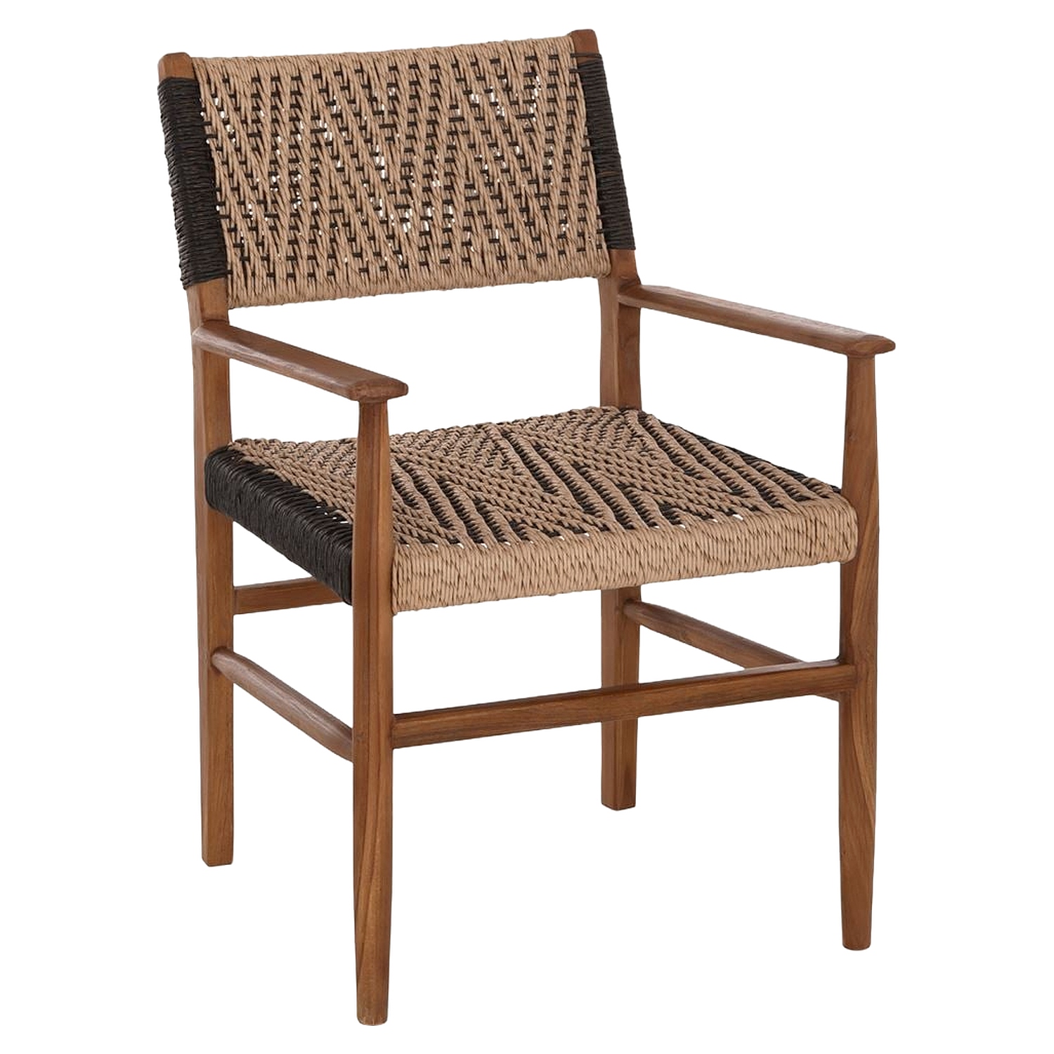 Κατασκευασμένη από ανθεκτικό ξύλο φτελιάς, η καρέκλα διαθέτει πλάτη και κάθισμα πλεγμένα με σχοινί. Η καρυδί και μαύρη απόχρωση ξύλου προσδίδει ζεστασιά και φιλόξενη αισθητική.