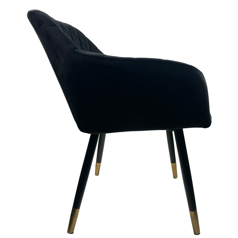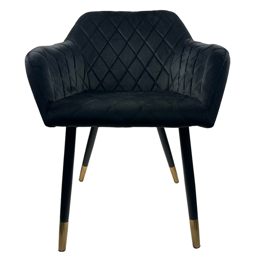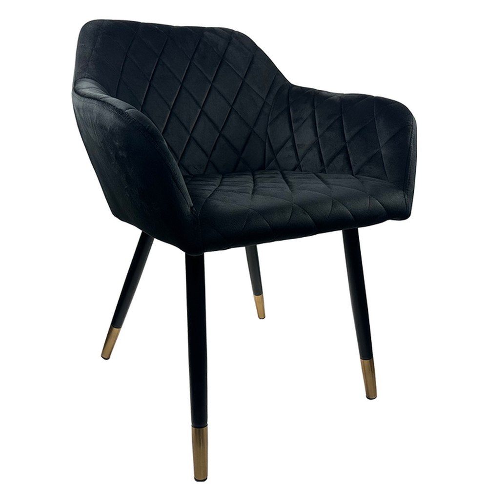 Η καρέκλα τραπεζαρίας ESPERANZA της ArteLibre προσφέρει μια πολυτελή αίσθηση στο χώρο σας με την εκλεπτυσμένη επένδυση από μαύρο βελούδο και το διακριτικό καπιτονέ σχέδιο στο κάθισμα. Τα μεταλλικά πόδια με χρυσαφένια άκρα προσθέτουν μια πινελιά γοητείας και κομψότητας, καθιστώντας την ιδανική επιλογή για κάθε σύγχρονη τραπεζαρία.