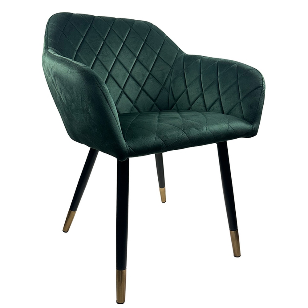 Η καρέκλα τραπεζαρίας ESPERANZA της ArteLibre σε πράσινο βελούδο προσθέτει μια αίσθηση φρεσκάδας και πολυτέλειας στο χώρο σας. Το βαθυπράσινο βελούδο δημιουργεί ένα κομψό και κλασικό στυλ, ενώ το καπιτονέ σχέδιο προσθέτει επιπλέον διάσταση και υφή. Τα μαύρα μεταλλικά πόδια με τις χρυσαφένιες λεπτομέρειες δίνουν μια διακριτική λάμψη, καθιστώντας την καρέκλα ιδανική για κάθε σύγχρονη τραπεζαρία.