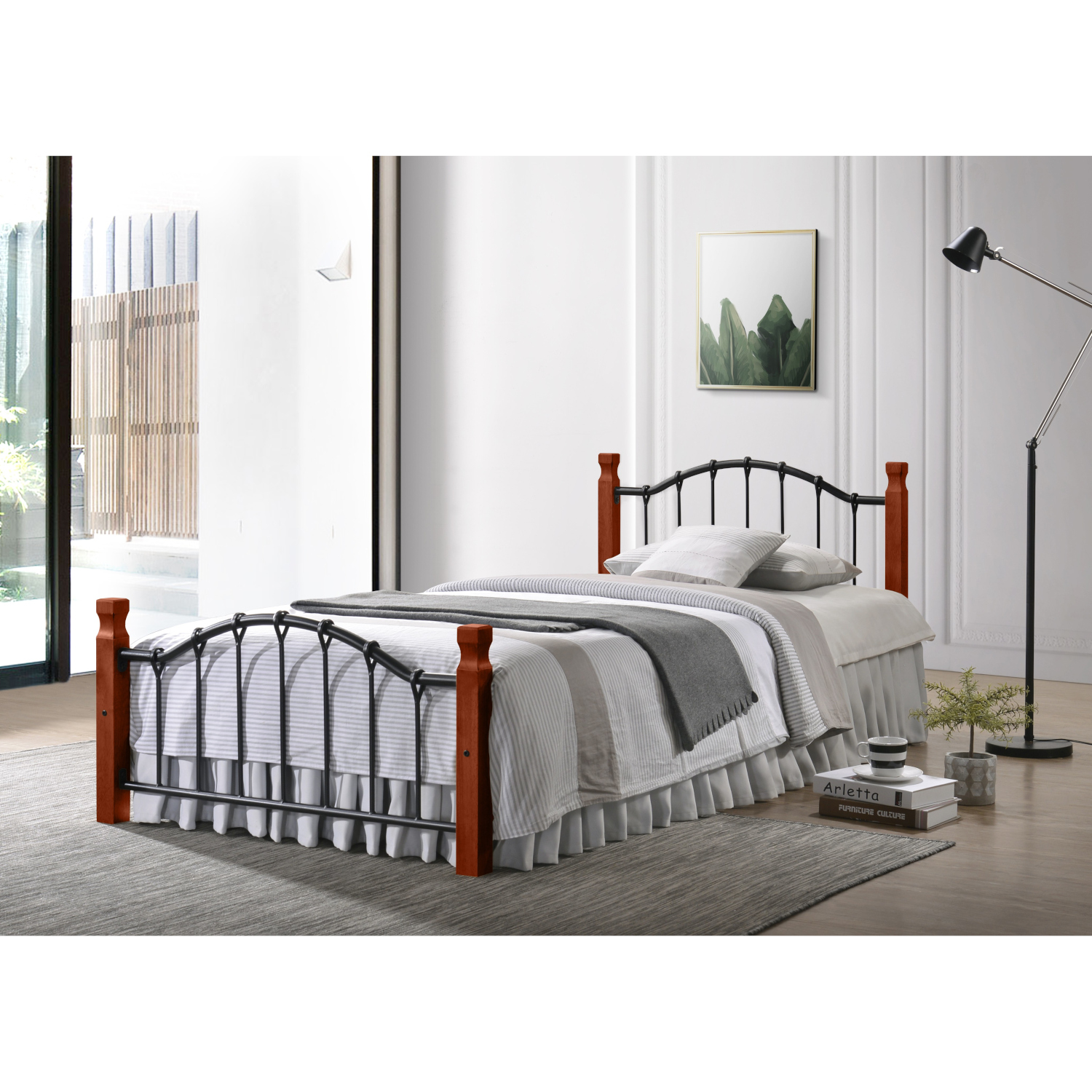 Κρεβάτι Ημίδιπλο ArteLibre CONCORDIA Μαύρο/Βελανιδιά Μέταλλο/Ξύλο 200x125x84cm (Στρώμα 120x200cm)