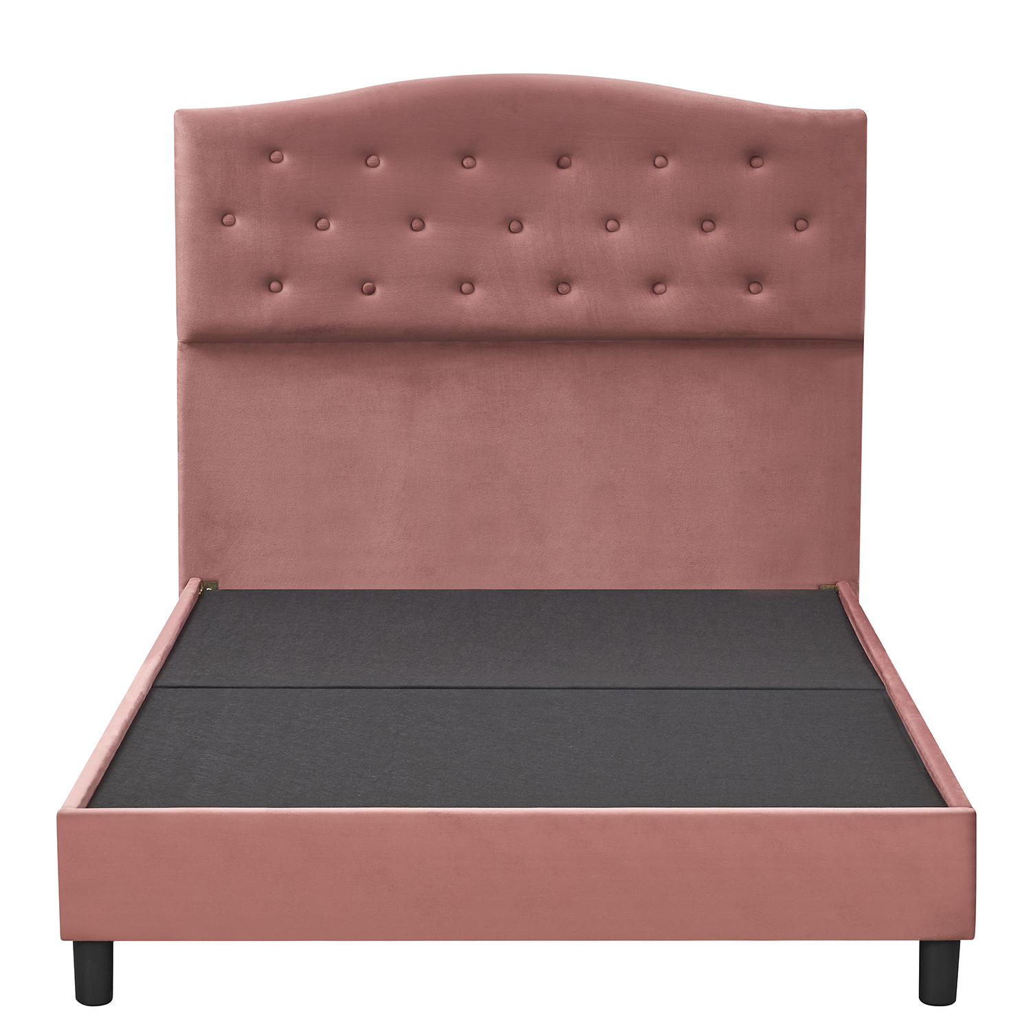 Το κρεβάτι είναι επενδυμένο με υψηλής ποιότητας ύφασμα σε απόχρωση σάπιου μήλου, το οποίο προσφέρει ανθεκτικότητα και μοντέρνα εμφάνιση. Η κατασκευή του εξασφαλίζει σταθερότητα και μακροχρόνια χρήση.
