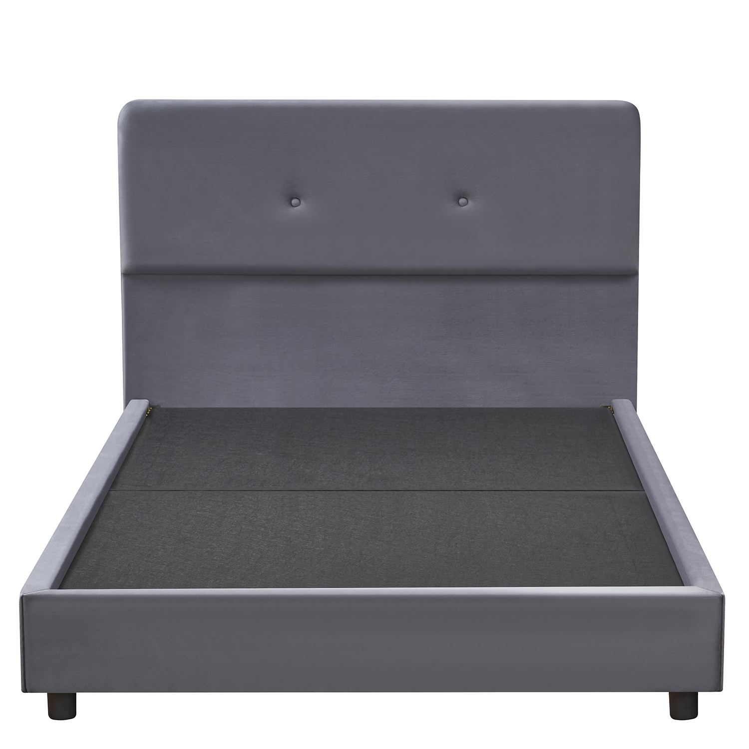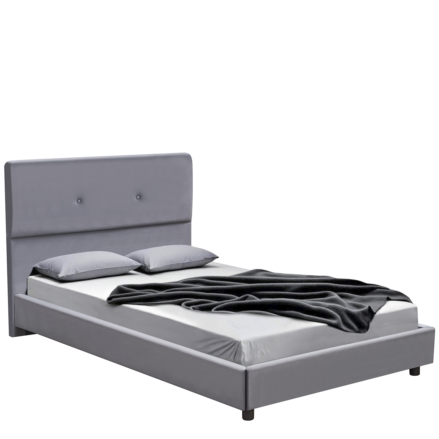 Το κρεβάτι είναι επενδυμένο με υψηλής ποιότητας γκρι ύφασμα, προσφέροντας ανθεκτικότητα και μοντέρνα εμφάνιση. Η κατασκευή του εξασφαλίζει σταθερότητα και μακροχρόνια χρήση.