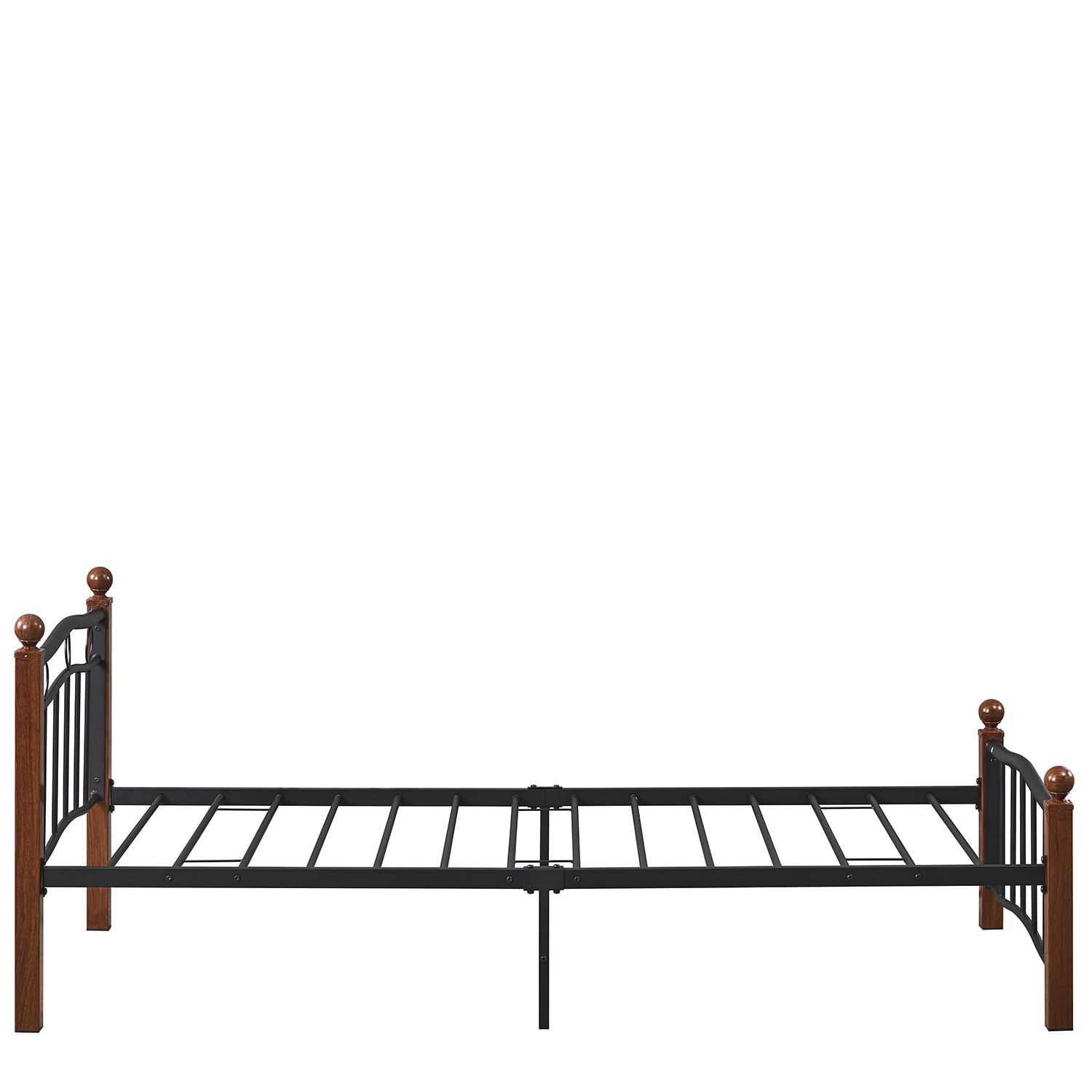Κατασκευασμένο από ανθεκτικό μαύρο και καρυδί μέταλλο, το κρεβάτι προσφέρει μακροχρόνια χρήση και στιβαρότητα. Το φινίρισμα είναι ανθεκτικό στις γρατζουνιές και στις καθημερινές φθορές.