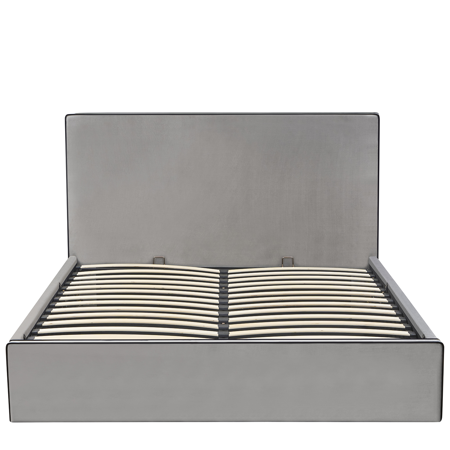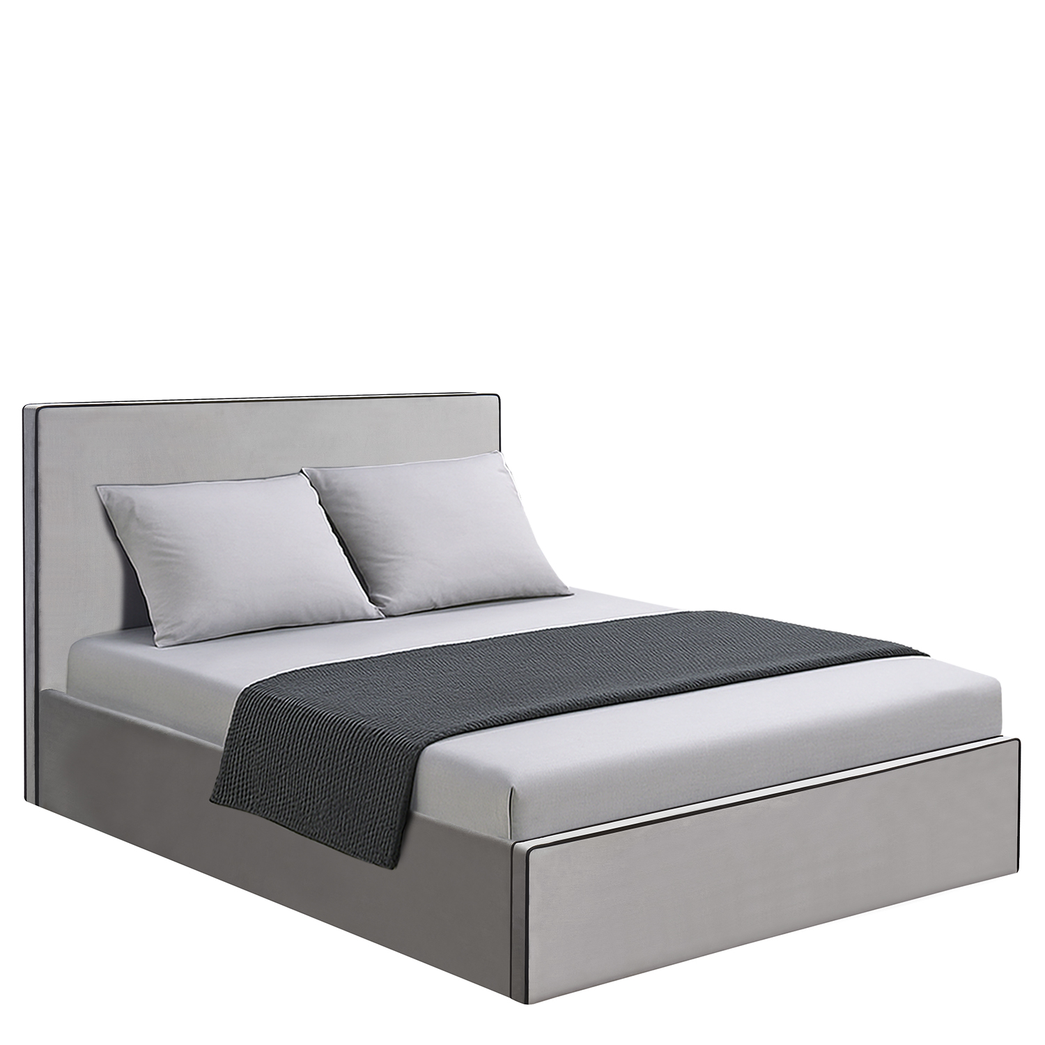 Το κρεβάτι είναι επενδυμένο με υψηλής ποιότητας γκρι ύφασμα, προσφέροντας ανθεκτικότητα και μοντέρνα εμφάνιση. Η κατασκευή του εξασφαλίζει σταθερότητα και μακροχρόνια χρήση.