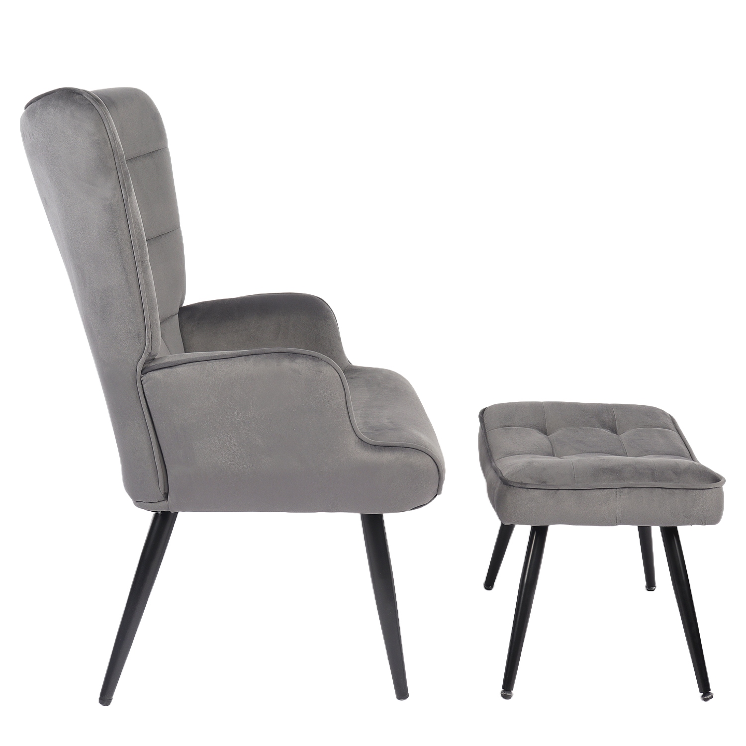 Πολυθρόνα Μπερζέρα Με Υποπόδιο ArteLibre LENNOX Γκρι Βελούδο/Ξύλο 96x68x73cm