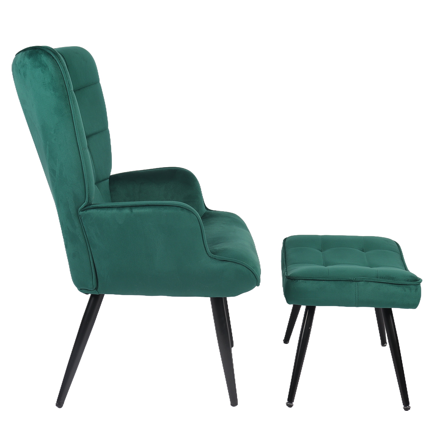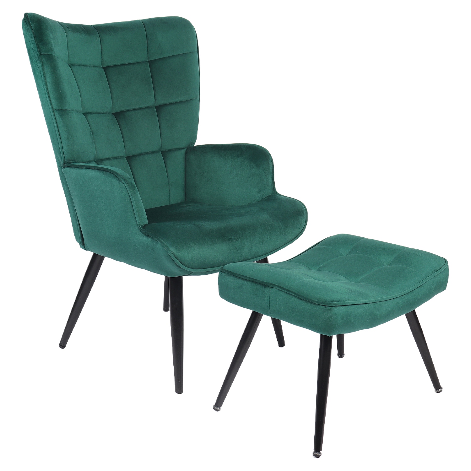 Πολυθρόνα Μπερζέρα Με Υποπόδιο ArteLibre LENNOX Πράσινο Βελούδο/Ξύλο 96x68x73cm