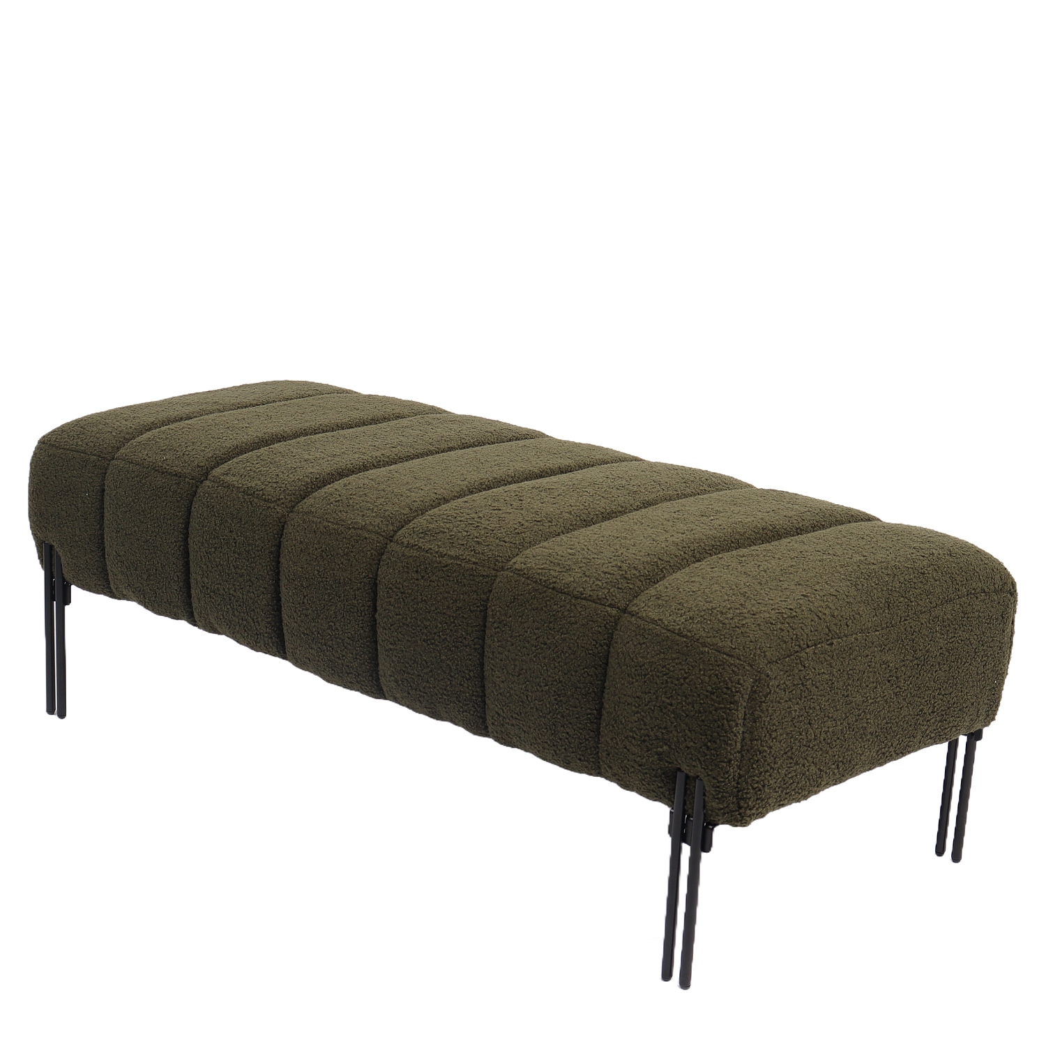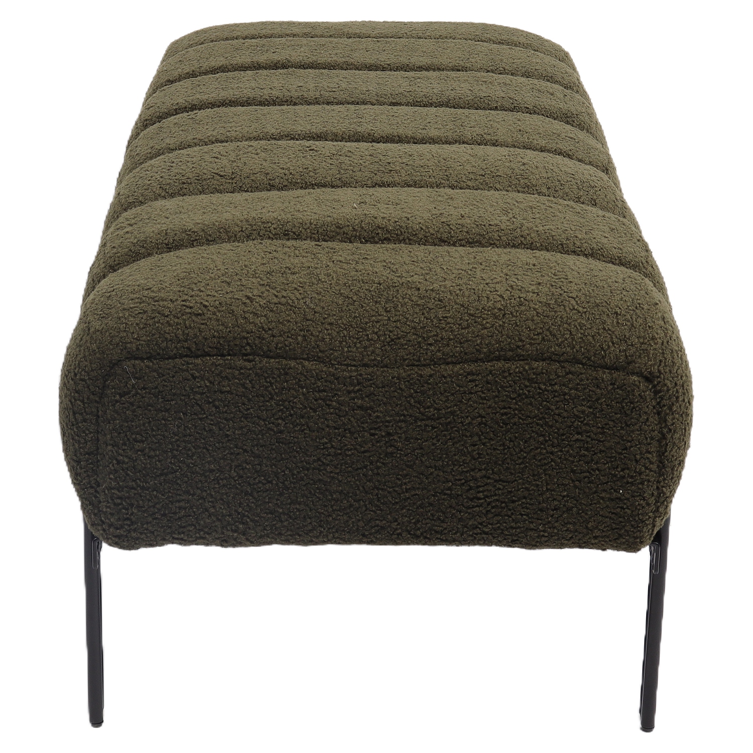 Κατασκευασμένο από υψηλής ποιότητας ύφασμα teddy και μαύρα μεταλλικά πόδια, το παγκάκι συνδυάζει άνεση και ανθεκτικότητα, προσφέροντας ένα κομψό και μοντέρνο στυλ.