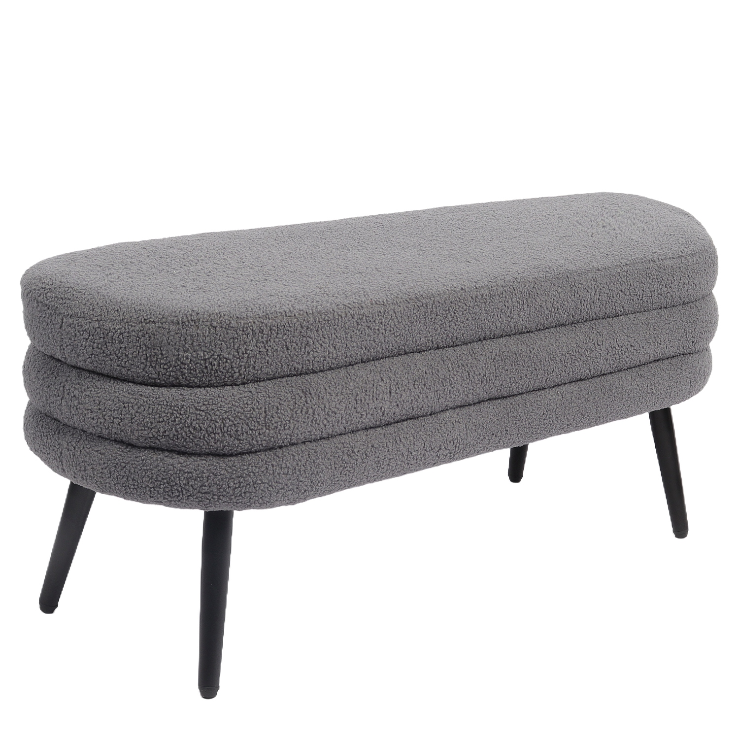 Κατασκευασμένο από υψηλής ποιότητας ύφασμα teddy και μαύρα μεταλλικά πόδια, το παγκάκι συνδυάζει άνεση και ανθεκτικότητα, προσφέροντας ένα κομψό και μοντέρνο στυλ.