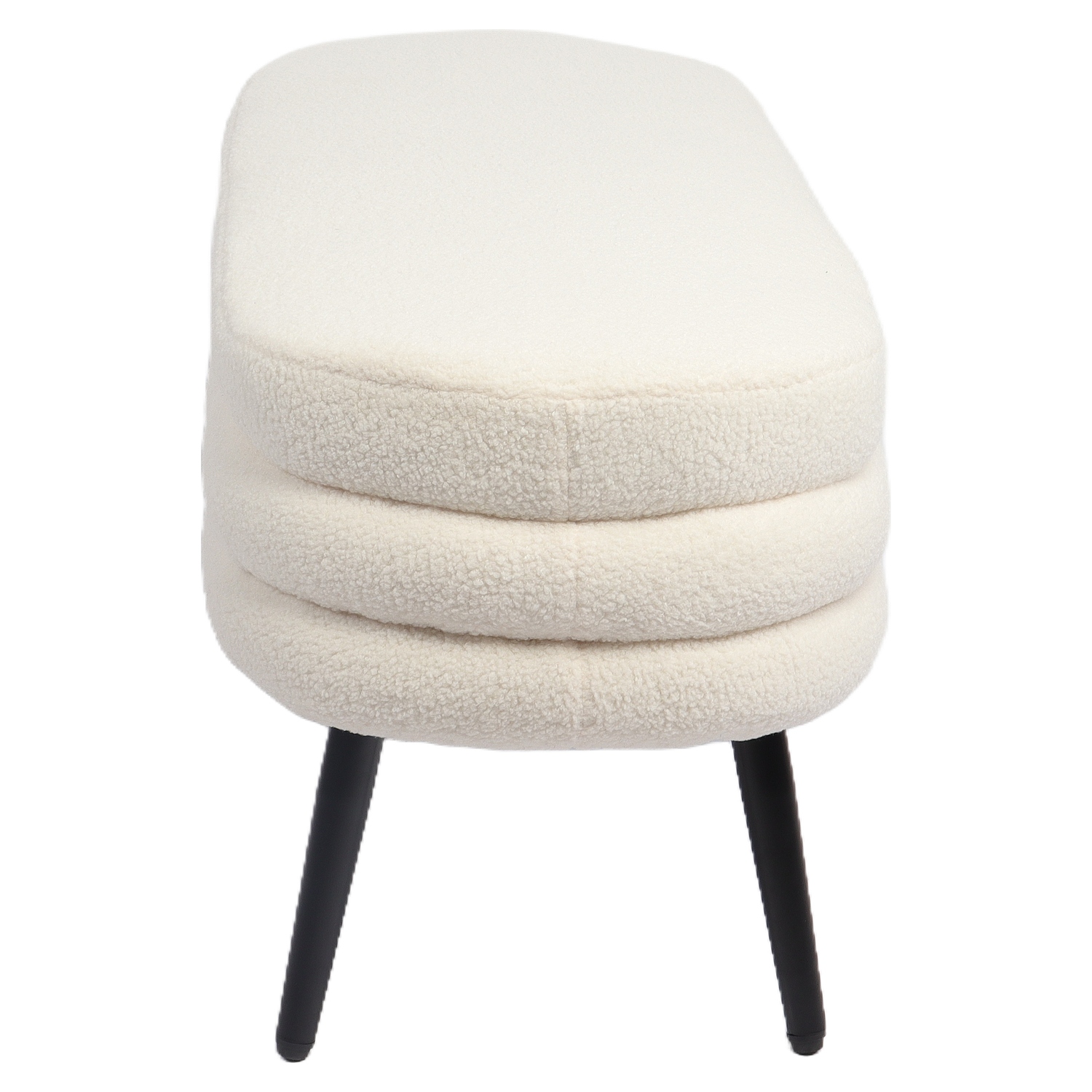 Κατασκευασμένο από υψηλής ποιότητας ύφασμα teddy και μαύρα μεταλλικά πόδια, το παγκάκι συνδυάζει άνεση και ανθεκτικότητα, προσφέροντας ένα κομψό και μοντέρνο στυλ.