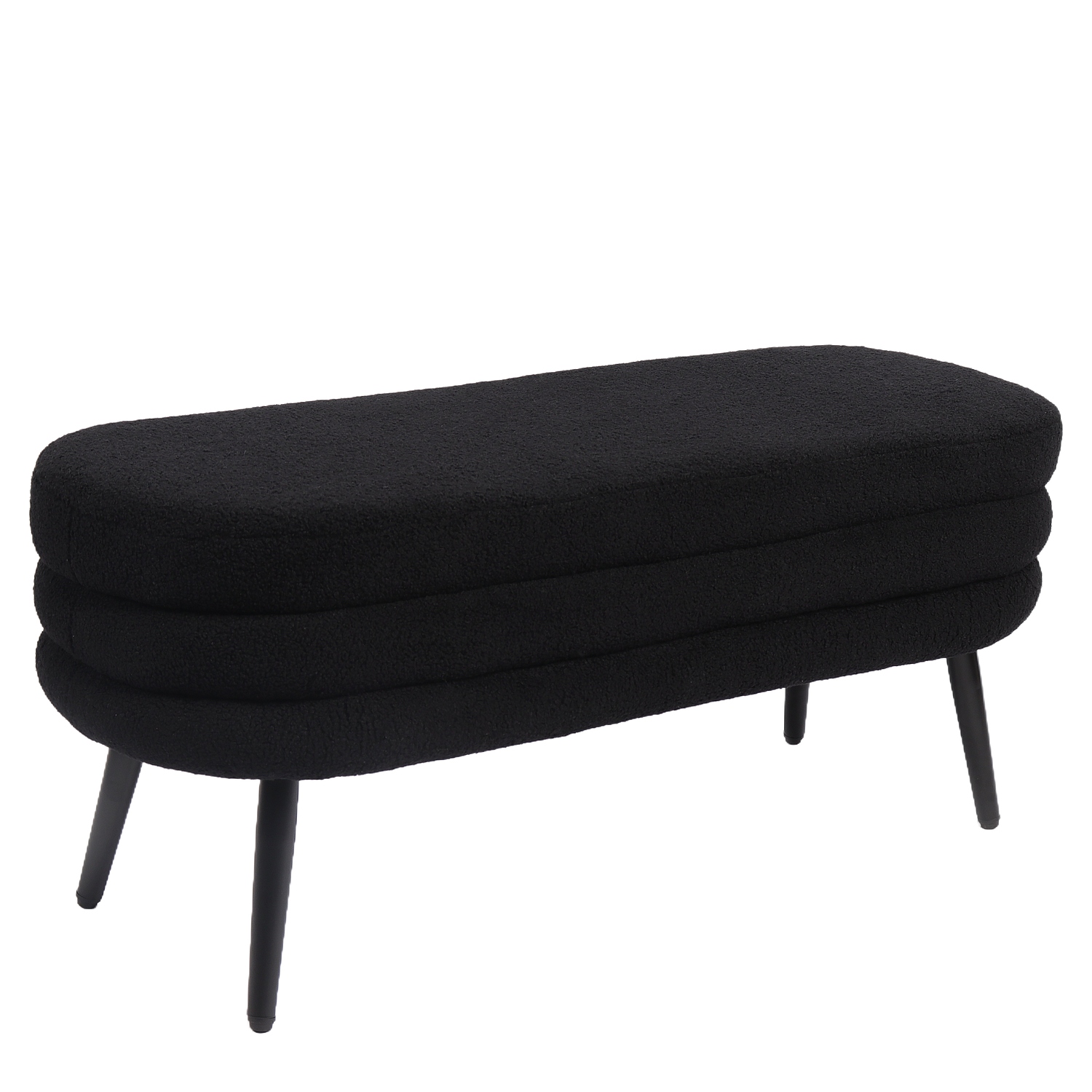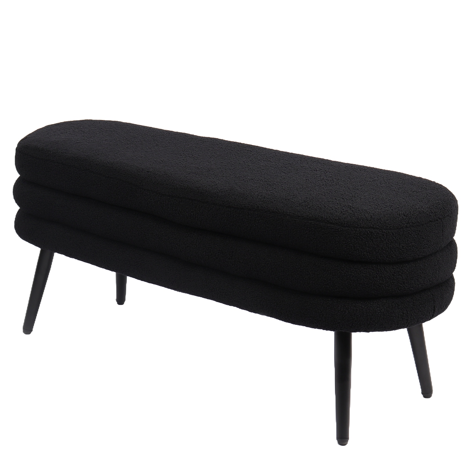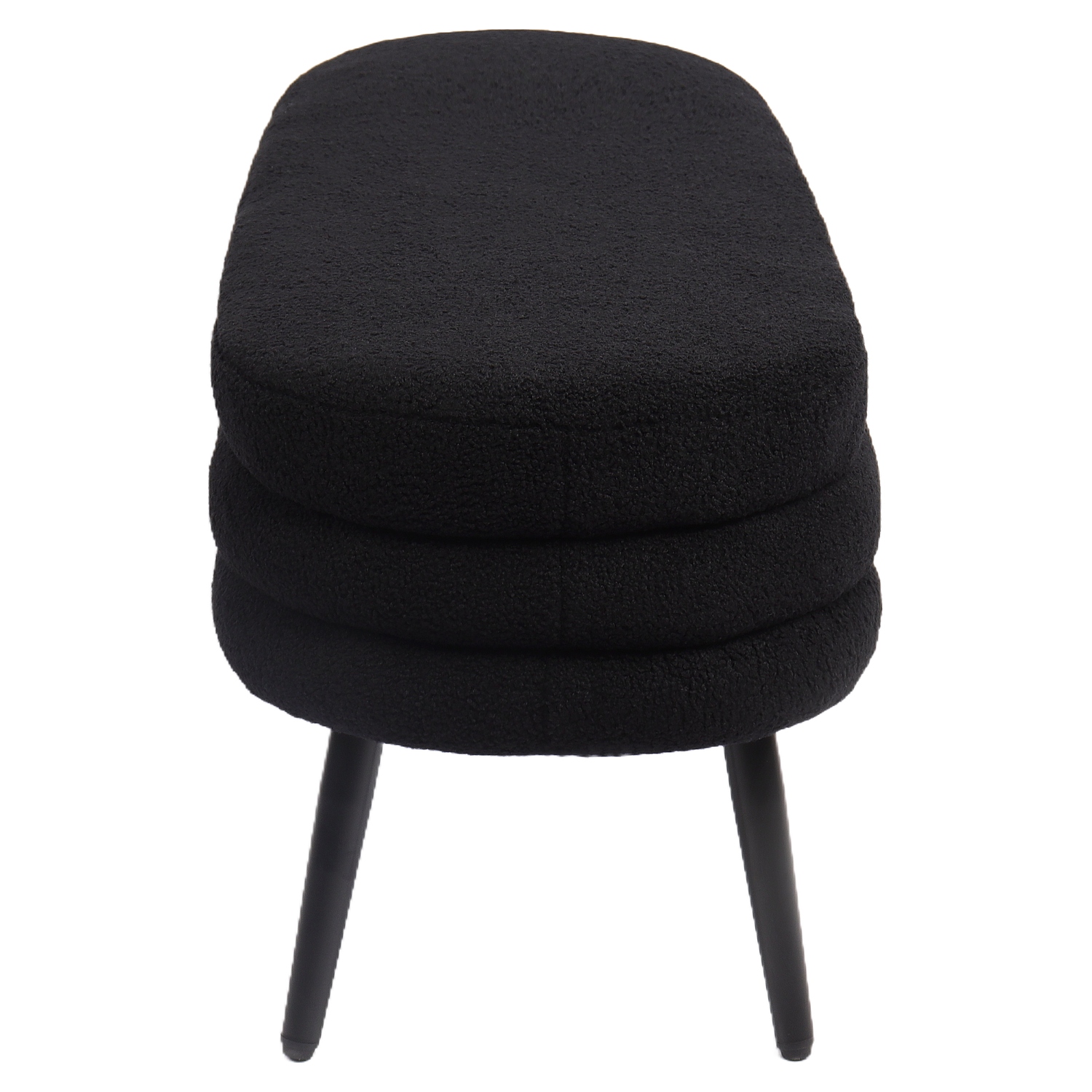 Κατασκευασμένο από υψηλής ποιότητας ύφασμα teddy και μαύρα μεταλλικά πόδια, το παγκάκι συνδυάζει άνεση και ανθεκτικότητα, προσφέροντας ένα κομψό και μοντέρνο στυλ.