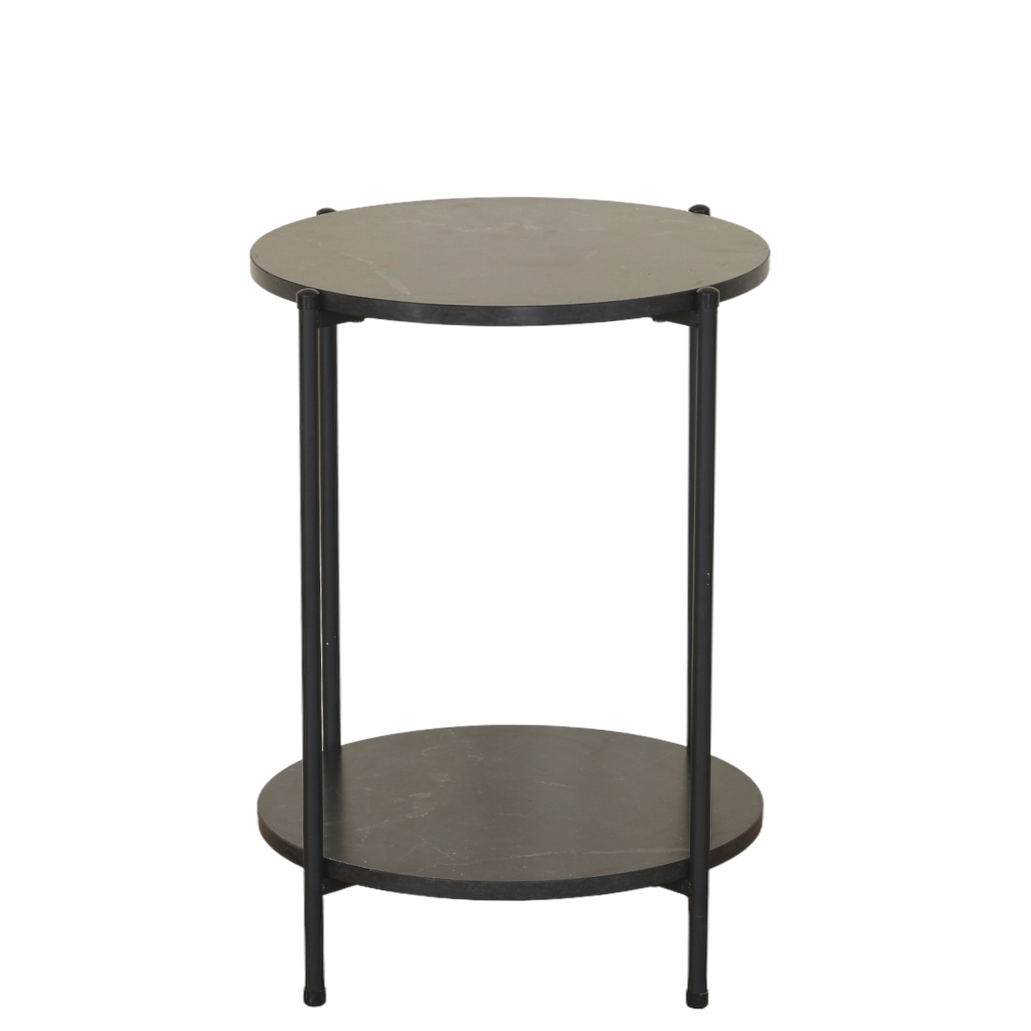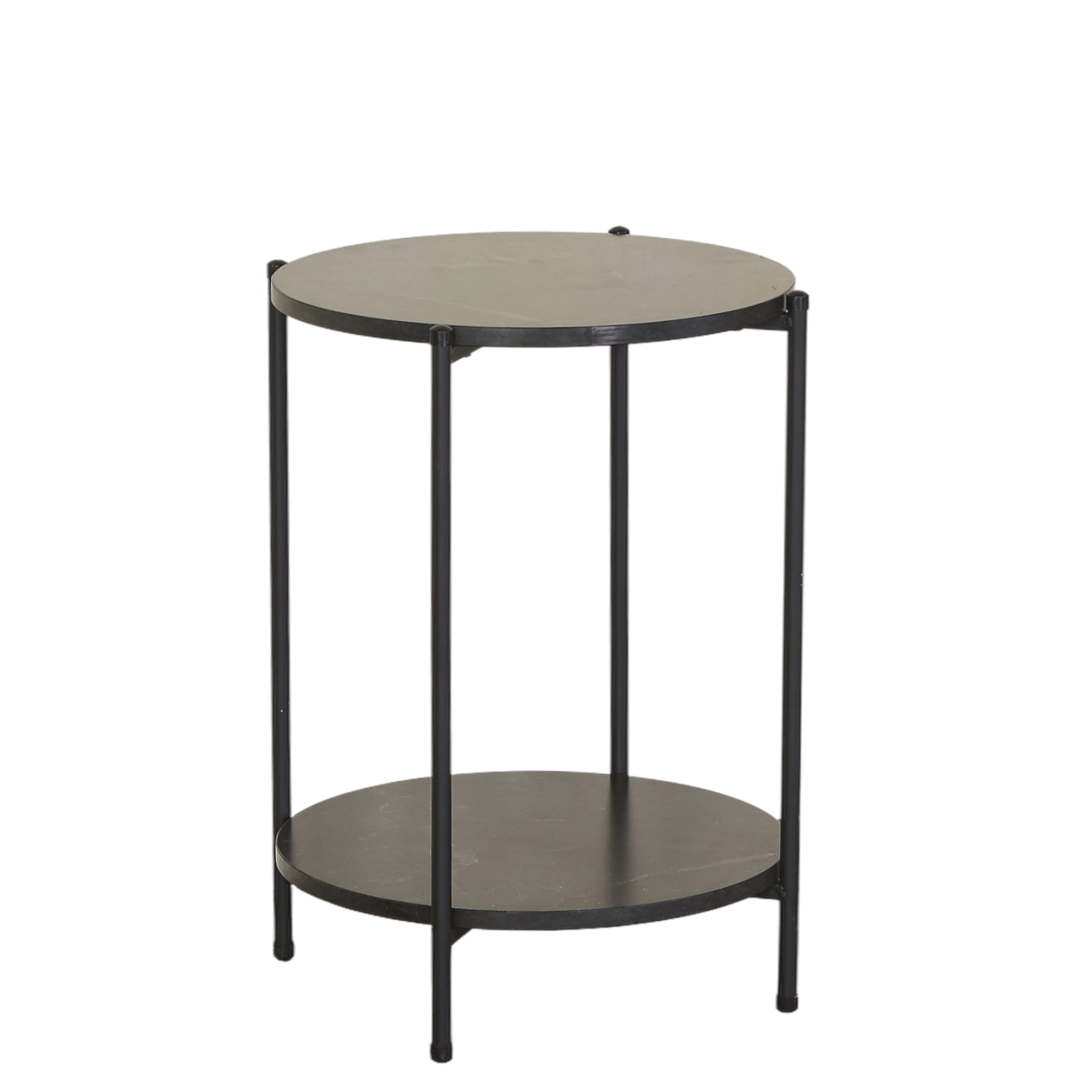 Κατασκευασμένο από μοριοσανίδα υψηλής ποιότητας με μαρμάρινο φινίρισμα και ανθεκτικό μαύρο μέταλλο, το τραπεζάκι εξασφαλίζει μακροχρόνια χρήση και αντοχή στις καθημερινές φθορές.