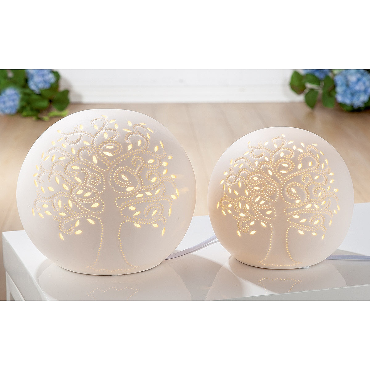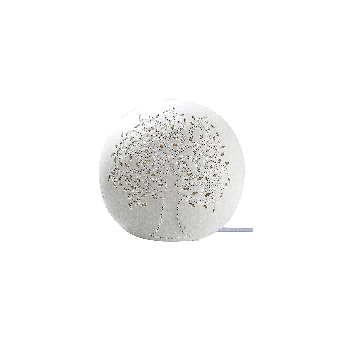 Λάμπα επιτραπέζια στρογγυλή με διακόσμηση δέντρο της ζωής λευκό πορσελάνη 16x16x16cm.